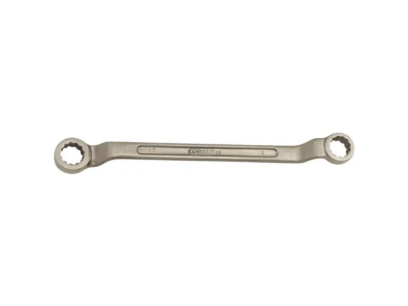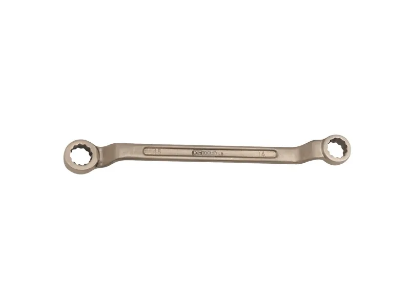 BONZElus dobbelt-ringnøgle forkrøppet 15 mm FlankeTraction-profilI overensstemmelse med din 838 / ISO 1085 / ISO 10104 / ISO 3318Ringe 75° forkrøppetGnistfriExplosionsbeskyttet;korrosionsbestandigslidbestandigAluminium-bronze (ikke-jern-legering)
