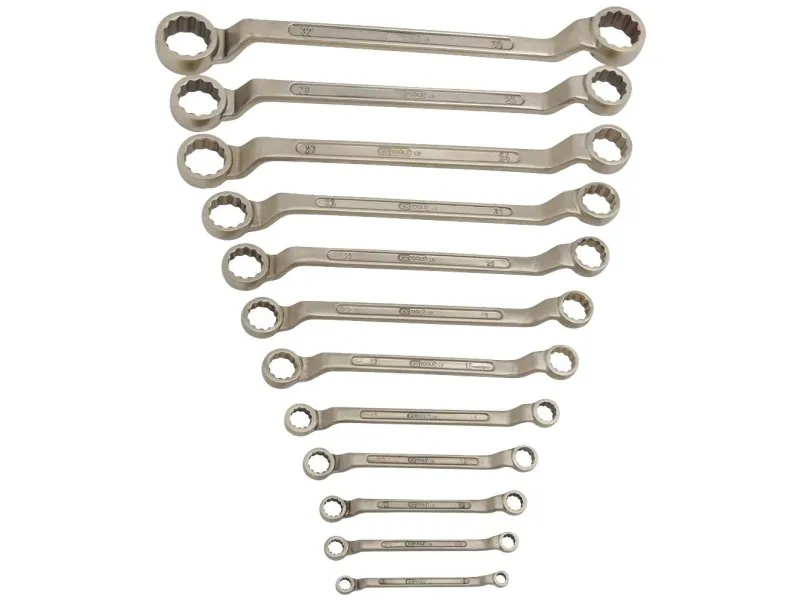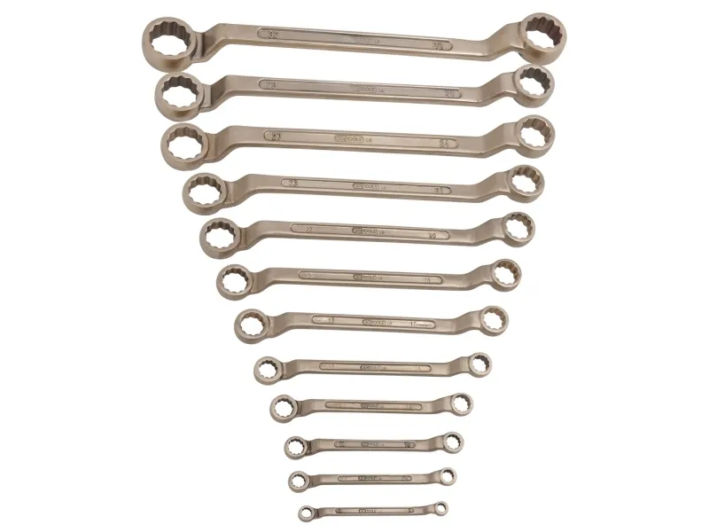 BONZElus dobbelt-ringnøgle-sæt, forkrøppet 12-dele 6-32mm FlankeTraction-profilI overensstemmelse med din 838 / ISO 1085 / ISO 10104 / ISO 3318Ringe 75° forkrøppetGnistfriExplosionsbeskyttet;korrosionsbestandigslidbestandigAluminium-bronze (ikke-jern-legering)