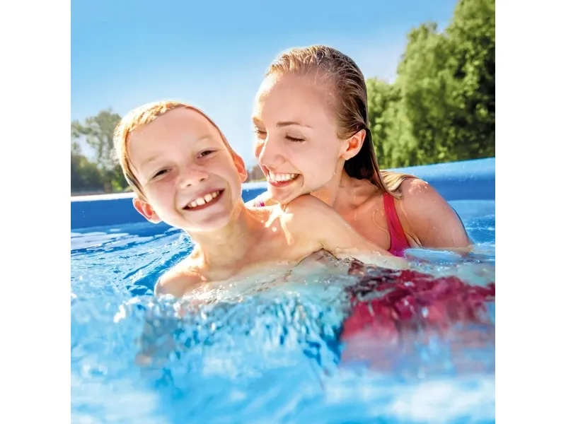 Inkl. filterpumpe (.1.250L ). Klar for vann på 10 minutter. Lag plask hele sommeren med Intex Easy Set oppblåsbare basseng som er lett å sette opp og lagre. Dette bassenget vil gjøre hagen din til stedet å være hele sommeren hvor familien kan slappe av og leke. Hydro Aeration Technology er innlemmet i patronfilterpumpen, noe som gir forbedret sirkulasjon og filtrering, forbedret vannklarhet og øker negative ioner ved vannoverflaten. En 220-240 volt Krystal Clear patronfilterpumpe er inkludert og er veldig enkel å installere - bare koble til slangene og nyt rent og forfriskende vann. Klar for vann på 10 minutter, spred ut på jevnt underlag, oppblås toppringen, fyll bassenget med vann og nyt moroa. Fra 6 år - under tilsyn av voksne. - inkluderer en Krystal Clear patronfilterpumpe med en pumpehastighet på 1250 L / time - omtrent oppstillingsstørrelse 244 x 61 cm - vannkapasitet 1.942 liter (80%) - klar for vann på 10 minutter