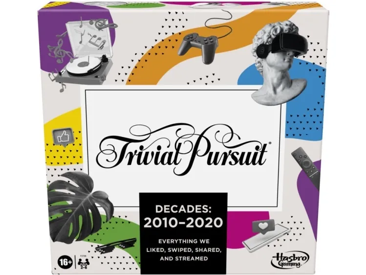 Test ferdighetene dine med spørsmål om oppslukende serier, låter fra topplistene, store nyhetshendelser, morsomme «memes» og enda mer fra perioden 2010 til 2020. Du tror kanskje du er den aller beste når det kommer til spørrespill om populærkultur fra 2010-tallet? Her er sjansen din til å bevise det en gang for alle! Brettspillet Trivial Pursuit Decades 2010 to 2020 har quiz-spørsmål om populærkultur fra seks kategorier, inkludert Spilleliste, Oppslukende serier, Kultur, Nyheter, Knus internettet og Spill i vei. Samle venner og familie for en morsom kveld full av quiz-spørsmål. Dropp spillebrettet og prøv spillet mens dere kun bruker kort! Spillkortene til Trivial Pursuit Decades 2010 to 2020 ligger i en praktisk boks som du kan ta med deg hvor du vil. Trivial Pursuit, den tilhørende logoen, den karakteristiske designen av spillebrettet, spørsmålskortene, spillebrikkene og kakestykkene er varemerker som tilhører Hasbro. Hasbro Gaming, og alle relaterte varemerker og logoer er varemerker av Hasbro, Inc.