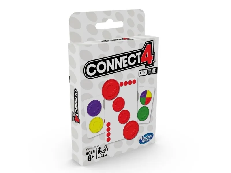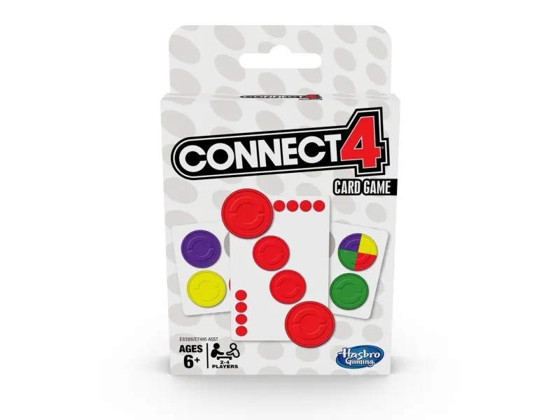 Det klassiske 4-på-rad-spillet har nå en vri i form av et raskt og morsomt kortspill! I denne versjonen av Connect 4-spillet velger spillerne 2 oppdragskort fra bunken, og holder mønstrene hemmelig. Deretter trekker de Connect 4-brikker og prøver å legge mønstre som matcher oppdragene. Enten det er å legge 4 lilla på rad, få en firkant i grønt eller matche brikker for å få en «L»-form i gult, er det et morsomt og spennende spill. Hvis spillerne trekker et brikkekort med et Power-Up-symbol, kan de utføre engangshandlinger som kan endre spillets gang på sekunder. Spillerne har som mål å fullføre 4 oppdrag for å vinne. Dette kortspillet som er raskt å spille, er praktisk hvis barna vil ta med seg Connect 4-spillet på reise eller på besøk hos venner. Hasbro Gaming og alle tilknyttede begreper er varemerker som tilhører Hasbro.