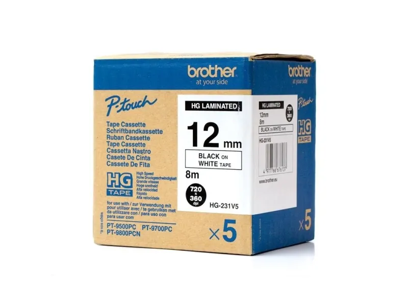 Brother HGE-231V5 - laminert teip - 5 kassett(er) - Rull (1,2 cm x 8 m)