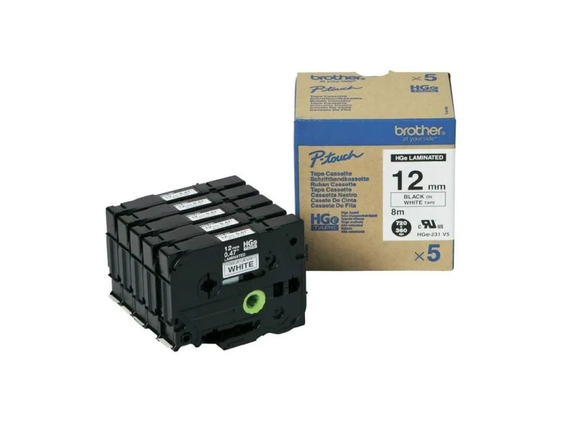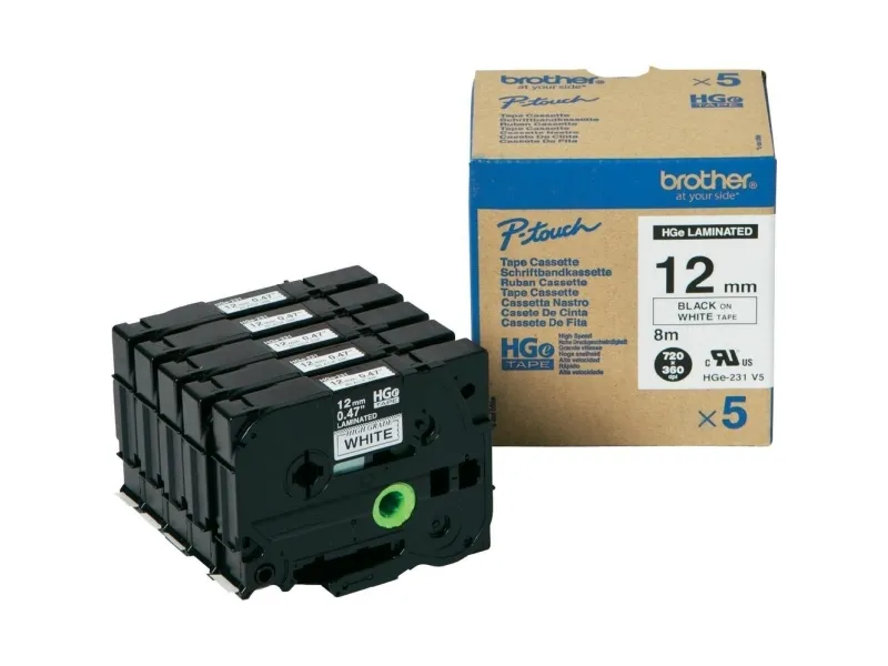 The Brother HGE-231V5 high grade labeling tape offers both high-quality resolution and high-speed printing, making it the perfect tool for industries that need to print large quantities of labels as quickly as possible.