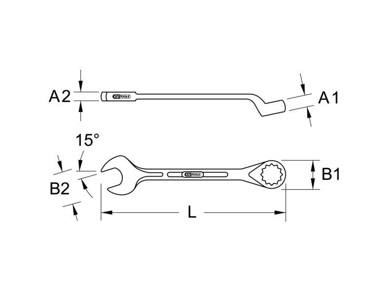 Ring-/gaffelnøgle, forkrøppet, 3 FlankeTraction-profilDIN 3113 FORM B / ISO 3318 / ISO 7738Gaffelstilling 15° vinkletRing 70° forkrøppetRing 10° bøjetmat satineretKrom vanadium