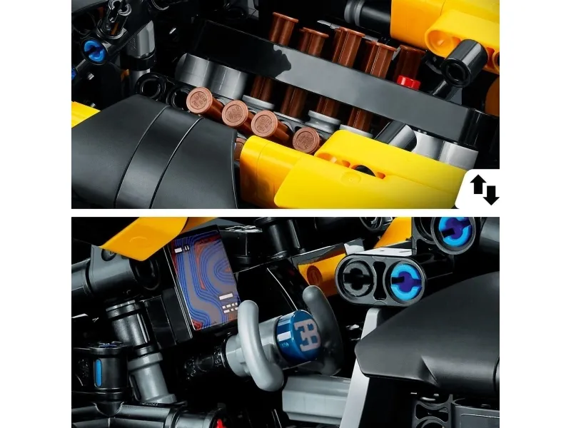 Flotte detaljer – barn kan bygge og utforske den fungerende W16-motoren, styringen og saksedørene på denne Bugatti racerbilmodellen