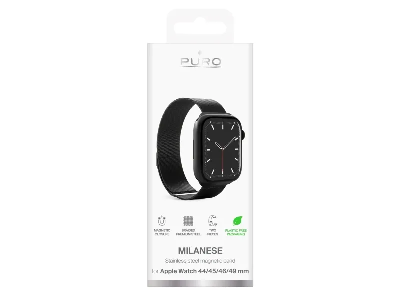Puro Milanese - Sløyfe for smart armbåndsur - 144 - 220 mm - svart - for Apple Watch Hermès Series 9, SE 3, Series 10, Series 11, Series 9, Ultra 2, Ultra 3