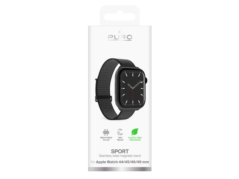 Puro Sport Band - Sløyfe for smart armbåndsur - 144 - 220 mm - svart - for Apple Watch Hermès Series 9, SE 3, Series 10, Series 11, Series 9, Ultra 2, Ultra 3
