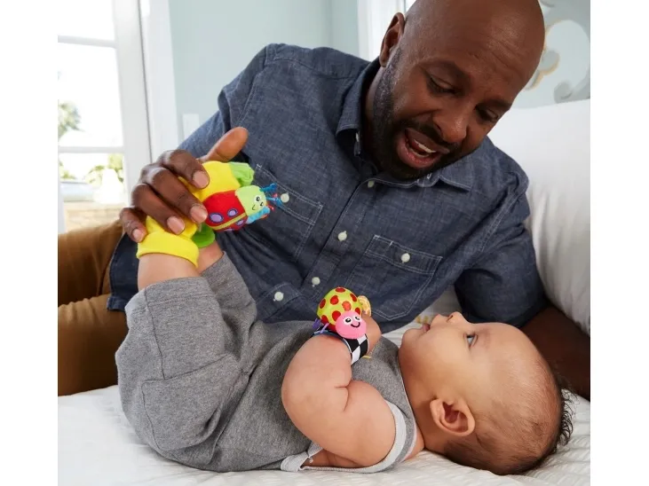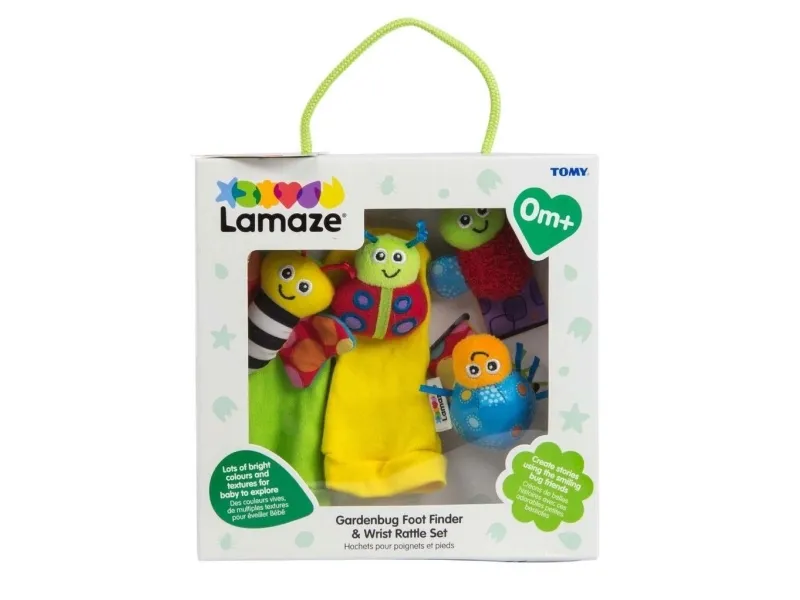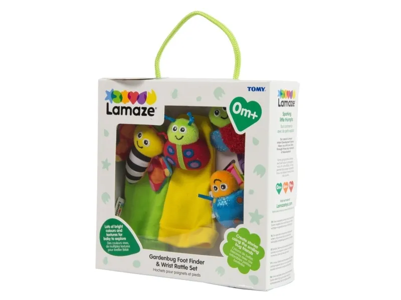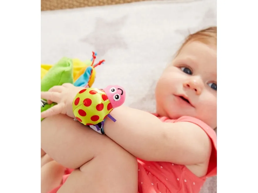 An enchanting four-piece set that baby will love, the Lamaze Gardenbug Wrist Rattle Foot Finder Set has so much to discover. The bright colours and textures will fascinate baby and help to improve their focus and strengthen their eyes. Perfect for shared moments, watch as they delight at stories that you can create with the smiling faced bugs. This multi-sensory toy has so much to reach for and explore.