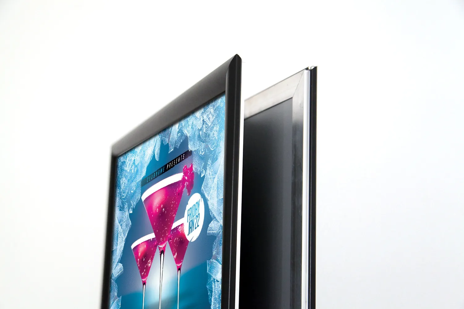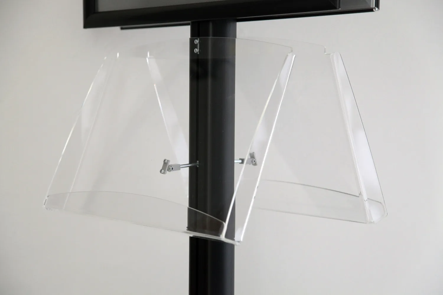 TWIN ProStand – Dobbeltsidet Infostand er lavet i eksklusiv mat sort finish og har en ekstra tung fod for stabilitet. Denne sorte TWIN ProStand er lavet af aluminium og leveres med 2 stk snaprammer samt 4 stk akryl brochureholdere til 8 x A4 eller 4 x A3. Anbefales kun til indendørs brug.