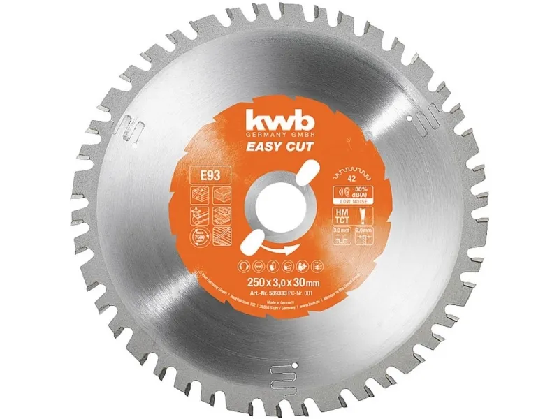EASY-Cut rundsavsklinger til bygge- og bordrundsave dia. 250 x 30 mm Hårdmetalbestykket, præcise og rene snit. Special-vekseltand, til bygge- og bordrundsave, samt kap- og geringssave. Asymmetrisk tanddeling til støjreduktion på min. 30%. Til spånplader, træ, metal og alu-profiler samt plast inkl. plexiglas.