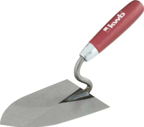 Flislegerelle, belgisk form Stål, hærdet, hjerteform, lakeret med S-hals, trægreb, Til montering af mørtel og fliseklæber