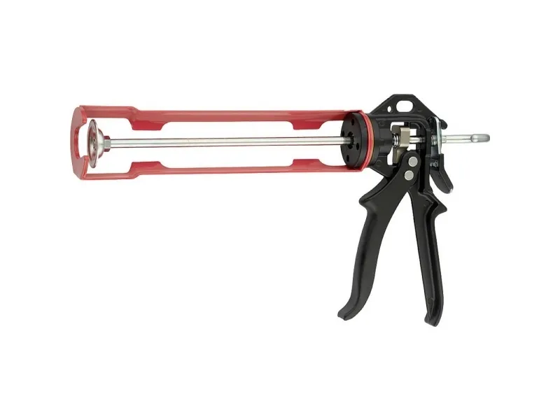 Skelet-patronpresser Egnet til forarbejdning af silikone, akryl og diverse klæbe- og tætningsstofpatroner med 310 ml standardpatroner, smidig fremrykken af den ikke-optimale fremføringsstang med indvendig plastføring, metal-fremføringspladen sikrer en problemfri dosering af patronindånding, optimal betjening i enhver situation, integreret trådlakerede patronhalvskål i stålblik, der kan drejes.