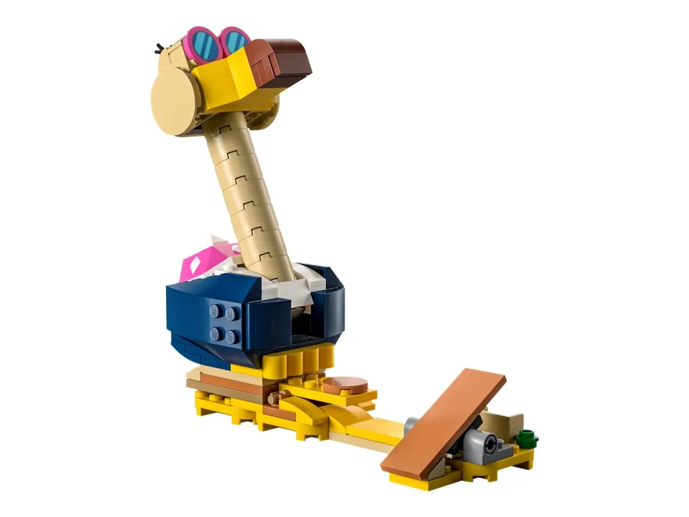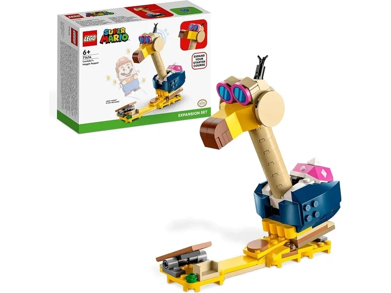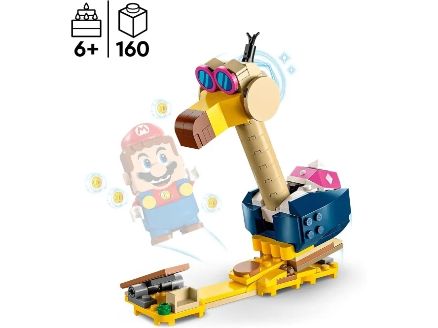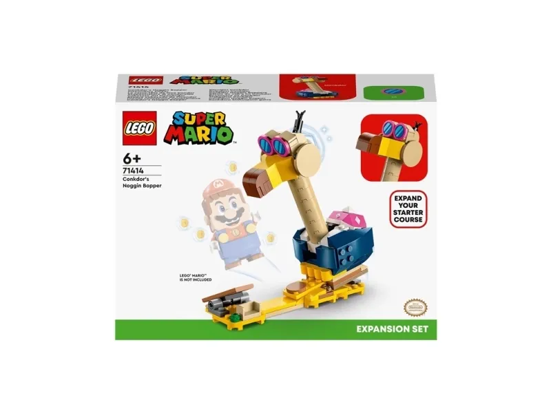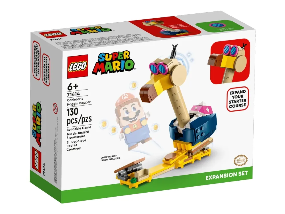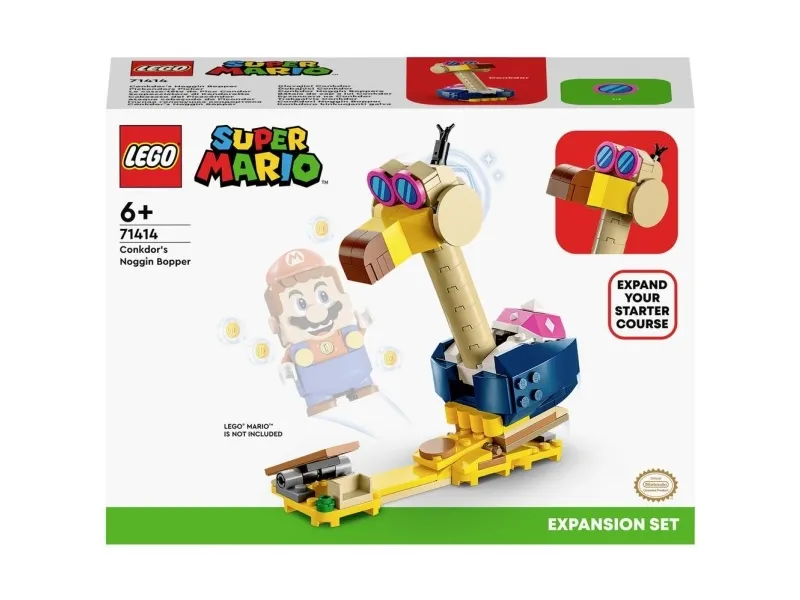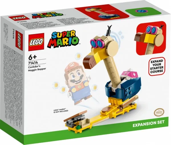 LEGO® Super Mario™ fans kan slåss mot en stor figur med ekstrabanesettet Conkdors skallesmasher (71414). Settet inneholder en stor, byggbar Conkdor-figur som barn kan kjempe mot med en LEGO® Mario™, LEGO® Luigi™ eller LEGO® Peach™ figur (ikke inkludert). Hopp på utløseren, men unngå den langhalsede Conkdors store nebb når den angriper. Tramp deretter på Conkdors hode for å beseire ham. Hopp på springbrettet for å få Conkdor til å reise seg igjen.