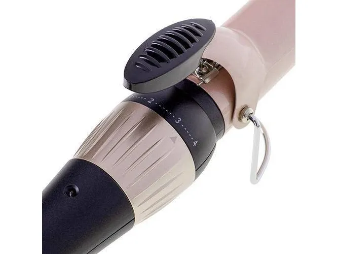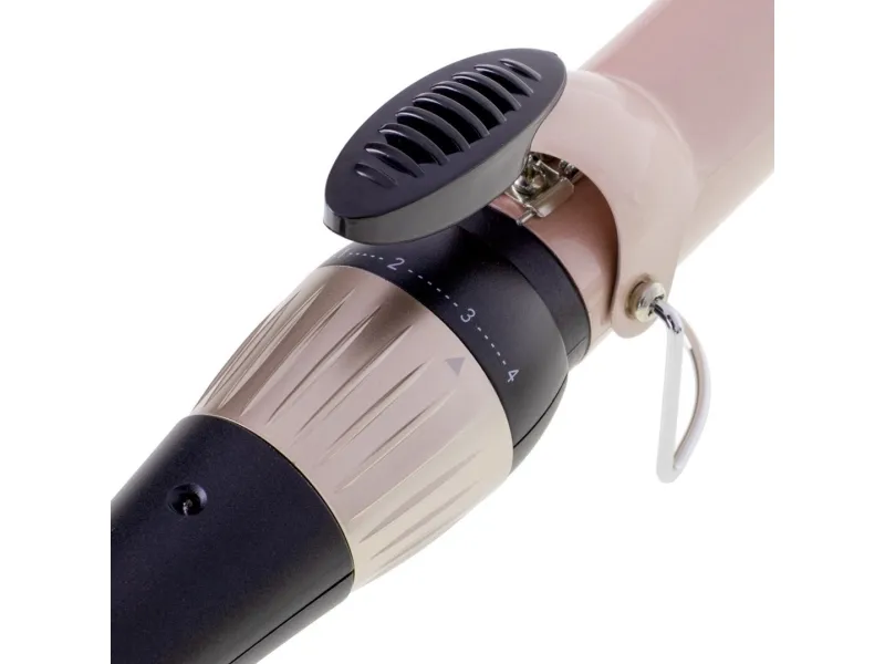 Max Power: 200W Nom. Power: 56W. ø32mm. Ceramic coated barrel. Temperature setting knob: 0-1-2-3-4 Cool touch tip, swivel cord, foldable stand. 4 temp. settings: 140°C, 160°C, 180°C, 200°C