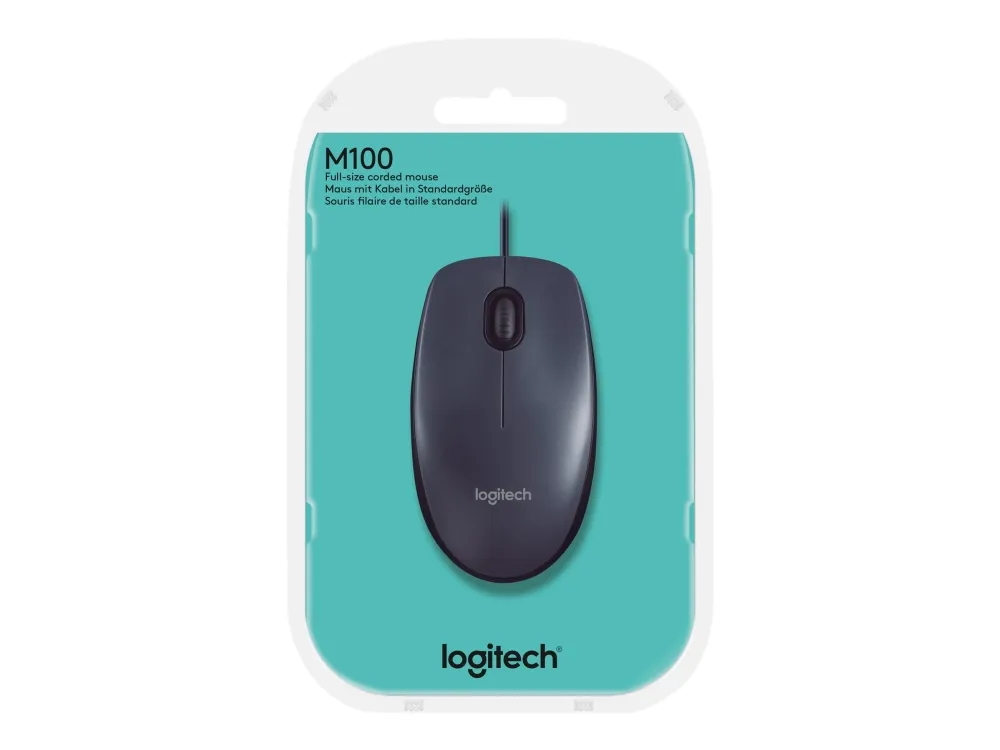 Logitech Mouse M100 gir deg det grunnleggende for komfortabel og pålitelig styring av datamaskinen. Du trenger ikke å installere noen programvare. Og siden den har ledning, er det bare å koble kabelen til en USB-port og ta den i bruk med en gang. Den ambidekstrale formen i full størrelse gjør at hånden hviler komfortabelt, og den høyoppløselige optiske sporingen (1000 dpi) gir deg responsiv og jevn markørstyring for presis sporing og enkel tekstmarkering.