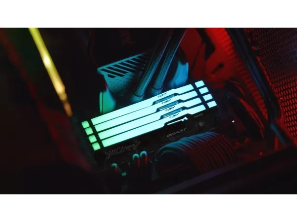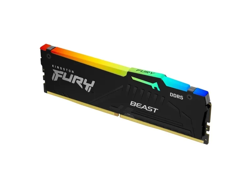 Kingston FURY Beast RGB delivers a boost of performance and style with high speeds, aggressive styling and RGB lighting that runs the length of the module for smooth and stunning effects. It features Plug-and-Play automatic overclocking at high speeds and is both Intel XMP-ready and ready for AMD Ryzen. FURY Beast RGB stays cool with its stylish, low-profile heat spreader.