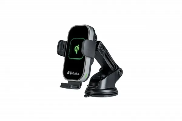 Qi wireless phone charger for your car. Verbatim's fast-charging phone holder uses high-speed Qi wireless charging technology to provide safe and fast charging for your Android or iPhone. The high-quality charging mount with its tempered glass surface allows handsfree calls and easy viewing of GPS maps while quickly charging your Qi-enabled smartphone.