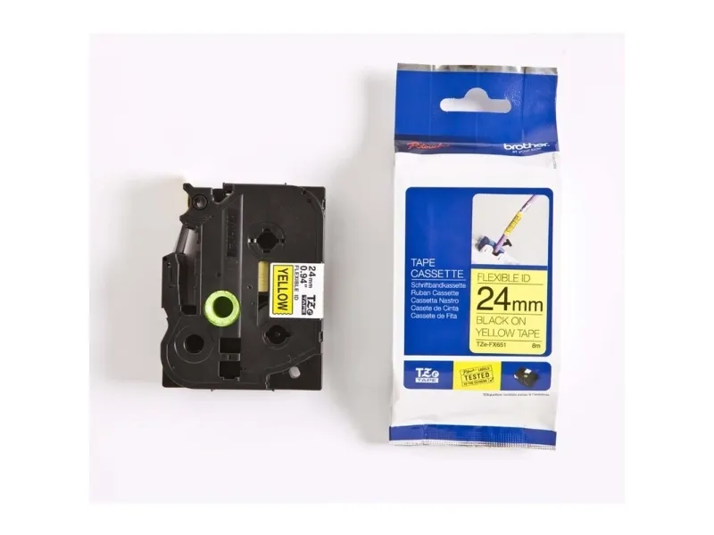 Brother TZe-FX651 - Svart på gult - Rull (2,4 cm x 8 m) 1 kassett(er) fleksibelt bånd - for Brother PT-D600; P-Touch PT-3600, D610, D800, E550, P750, P900, P950; P-Touch EDGE PT-P750