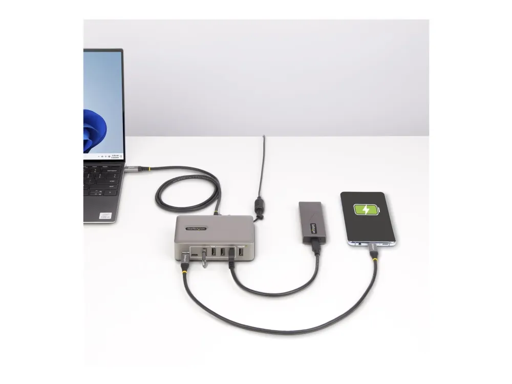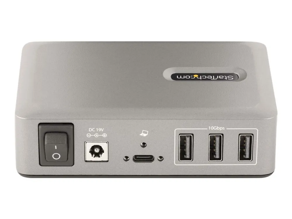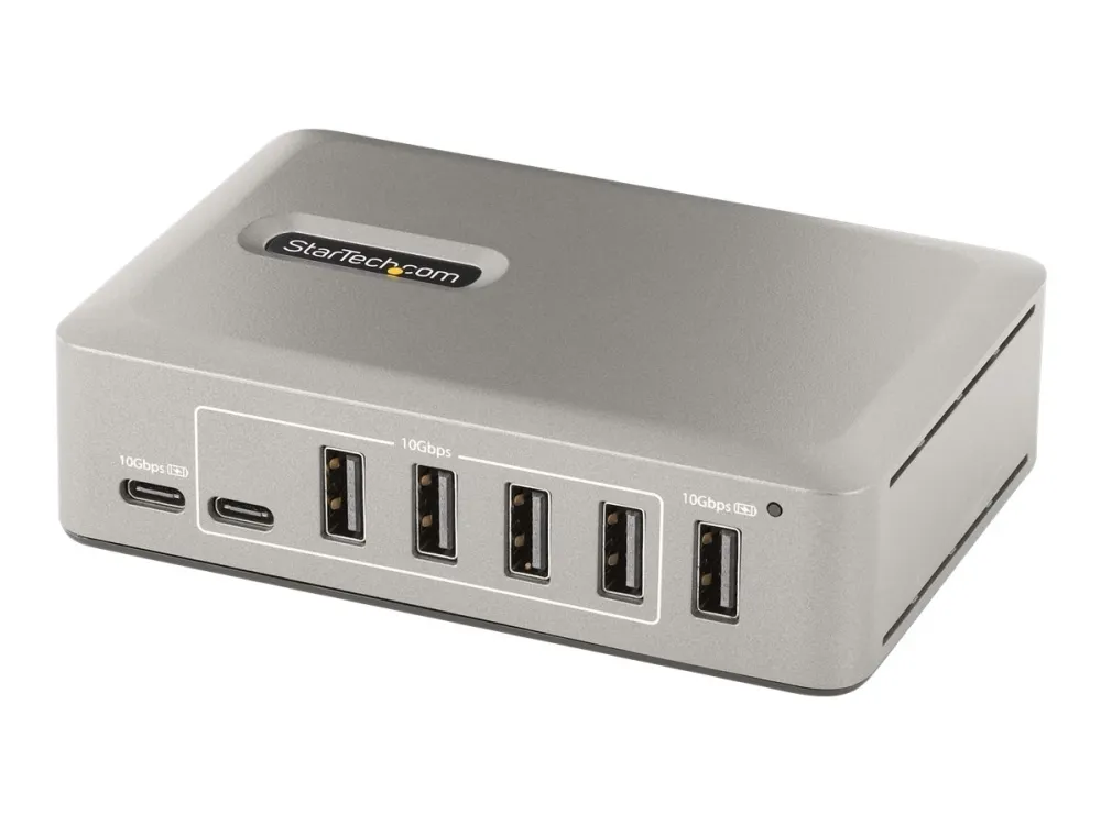Add ten USB 3.2 Gen 2 (10 Gbps) ports (8x USB-A, 2x USB-C) to a USB-C computer using this 10-port USB-C hub. The USB hub is self-powered with an included power adapter. The USB hub features overcurrent protection (OCP). OCP aids in preventing peripherals from overdrawing power, avoiding USB device dropouts and computers from shutting down unexpectedly. Support for Wake On USB enables USB communications, from devices connected to the hub, to take the computer out of standby or other power saving/sleep modes.