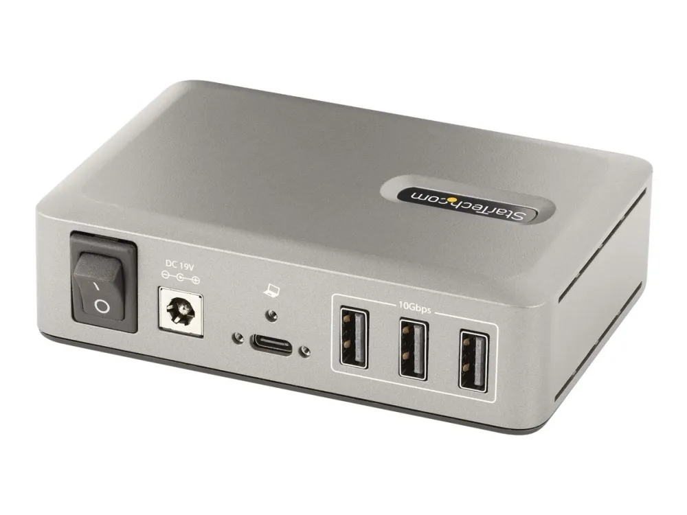 Add ten USB 3.2 Gen 2 (10 Gbps) ports (8x USB-A, 2x USB-C) to a USB-C computer using this 10-port USB-C hub. The USB hub is self-powered with an included power adapter. The USB hub features overcurrent protection (OCP). OCP aids in preventing peripherals from overdrawing power, avoiding USB device dropouts and computers from shutting down unexpectedly. Support for Wake On USB enables USB communications, from devices connected to the hub, to take the computer out of standby or other power saving/sleep modes.
