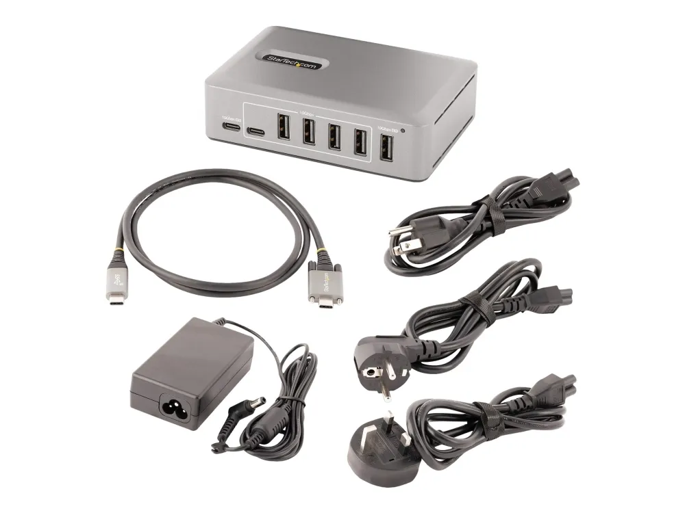 StarTech.com 10-Port USB-C Hub, 8x USB-A + 2x USB-C, Self-Powered w/ 65W Power Supply, USB 3.1 10Gbps Hub w/ BC1.2 Charging, Desktop/Laptop USB Hub with 3ft Locking USB-IF Certified Cable - USB Expansion Hub (10G8A2CS-USB-C-HUB) - Hub - 8 x USB 3.2 Gen 2 + 2 x USB-C 3.2 Gen 2 - stasjonær
