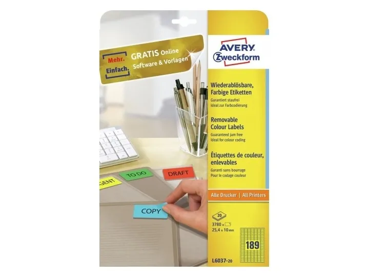 Avery L6037 - merkelapper - 3780 stk - 10 x 25.4 mm
