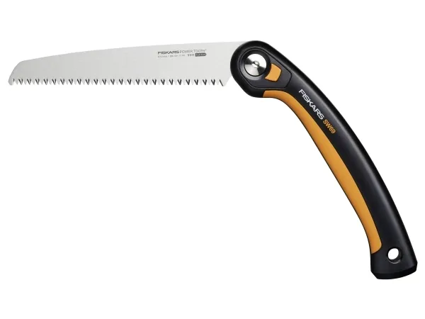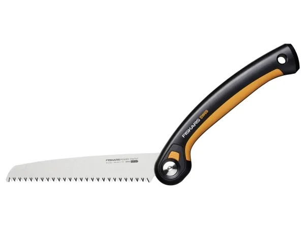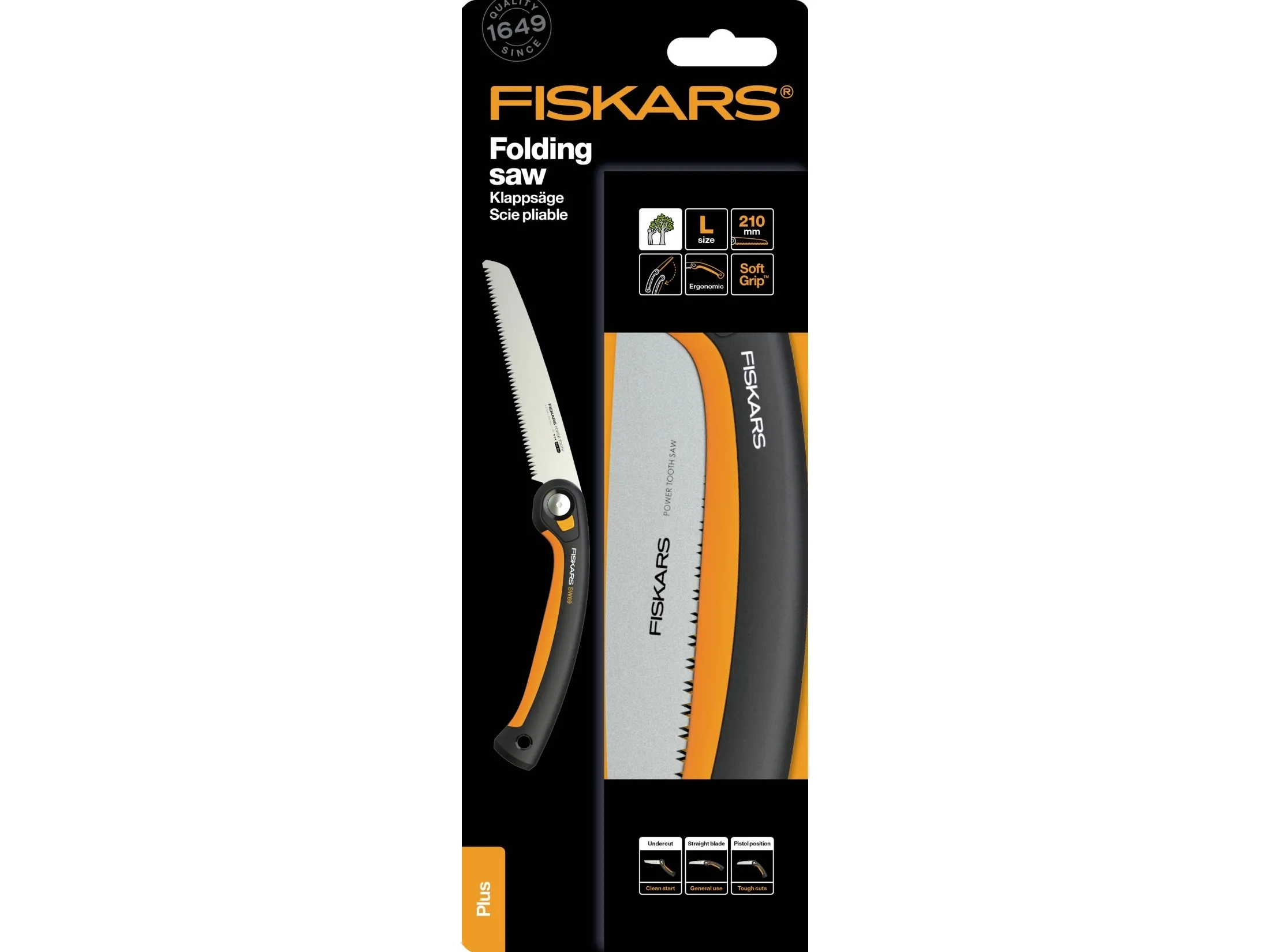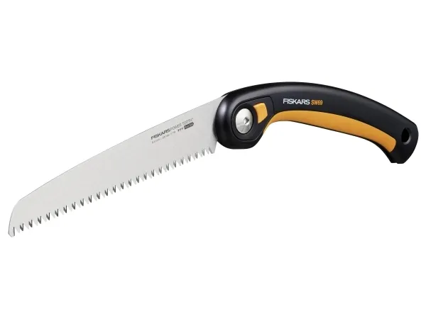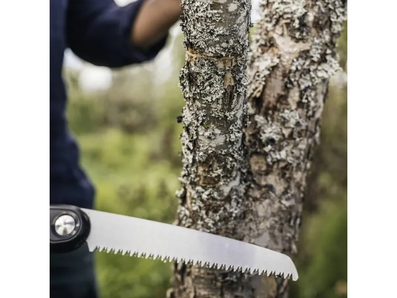 Plus klapsav SW69 21 cm til hurtige, rene snit via tykke stammer og grene 3 skærepositioner: Underskæring for rene startsnit, lige til almindelige snit og pistolgreb for en yderligere vægtstangsvirkning En sikker låsemekanisme holder klingen lukket for sikker opbevaring og transport Tooth™ bladet har barberbladsskarpe, tredobbelt slebne tænder til mangeårig brug Du kan skifte klingen med skruen garanterer kraft og præcision, sæson til sæson (21 cm ekstra savblad #1067555) Softgrip™-kontaktpunkter på det ergonomiske greb sørger for et skridsikkert greb i enhver position 7 TPI-ark til hurtigt, aggressivt snit Klingelængde: 21cm Plus™ klapsaven SW69 (21 cm) har tre skærepositioner med bladlås og gør det muligt at arbejde med hvert snit fra den bedste vinkel. Din Power Tooth™ har barberbladsskarpe, tredobbelt slebne tænder til hurtige, rene snit og låser sikkert i undersnits-, lige og pistolposition samt i en samlet stilling til sikker opbevaring og transport. Et sundt og rent snit kan gennemføres perfekt i 3 enkle trin. Skær først baren igennem fra undersiden af grene med skærepositionen. Som næste skærer du med den lige position eller med pistolgrebet for en ekstra vægtstangsvirkning et par centimeter fra dit første undersnit væk gennem gren. Til sidst skærer du det resterende stykke gren af mellem stamme og underskæring. Savens ergonomiske greb har Softgrip™-kontaktpunkter til at holde saven skridsikkert, og ved blot at udskifte savklingen er den klar til brug i sæsonen (erstatningssavblad #1067555).