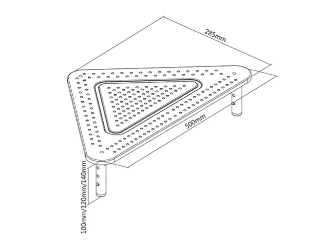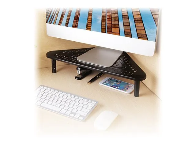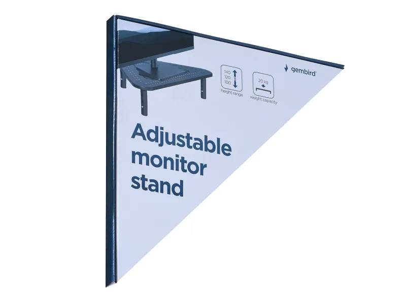 3 height settings for optimal viewing height Specificaties: Material: steel, plastic Surface finish: powder coating Color: fine texture black Dimensions: 500 x 285 x 120 mm Applicable devices: laptop, monitor Height range: 100/120/140 mm Shelf quantity: 1 Weight capacity: 20 kg Net weight: 0.96 kg Inhoud: Monitor stand User manual