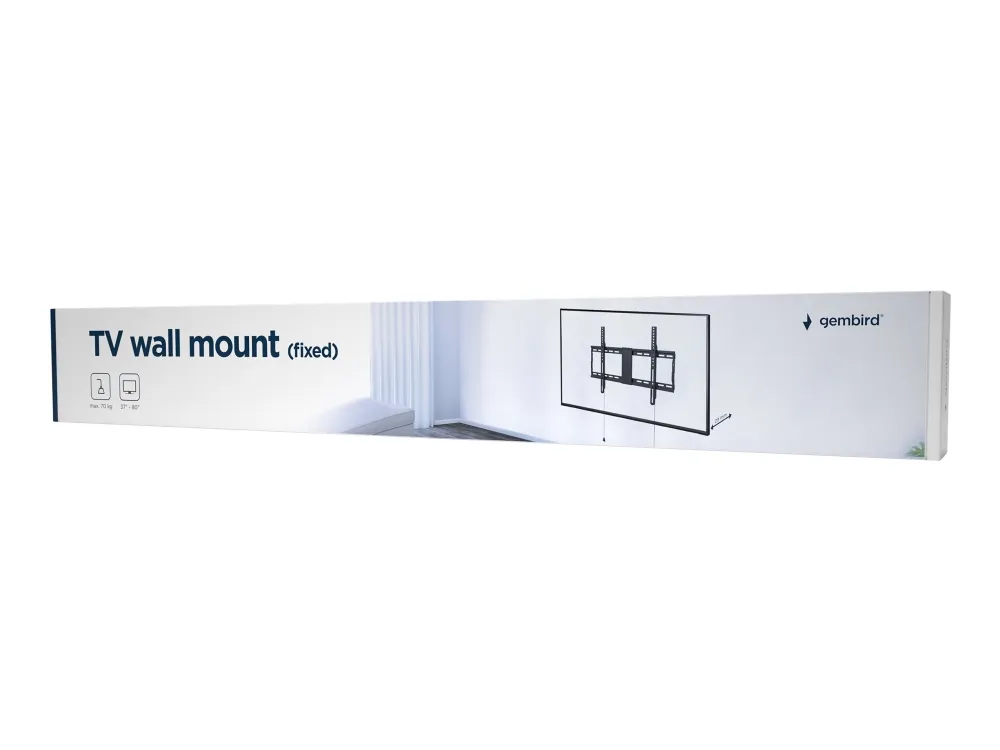 The Gembird WM-80F-01 mounting kit is designed for a secure flat panel display solution. Made from heavy-duty steel, it ensures durability and reliability for screens ranging from 37 to 80 inches. This fixed design features automatic spring locks and quick release cords, making installation easy and enhancing safety. With a maximum load weight of 70 kg, it allows users to mount their TV with confidence.