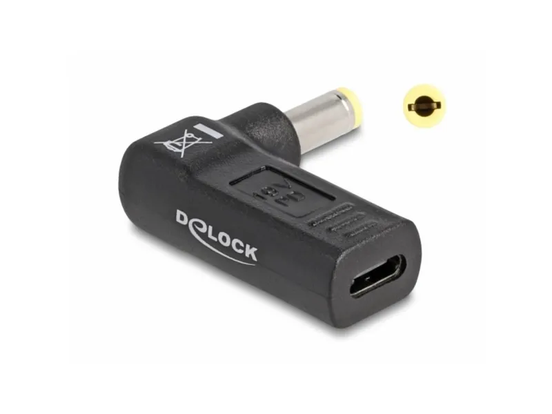 Delock - Strømadapter - 24 pin USB-C (hunn) til 5,5 x 2,5 mm DC-jakk (hann) - 19 V - 3 A - vinklet - svart