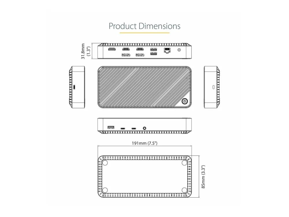 This USB-C triple 4K monitor docking station enables wide workstation flexibility, featuring compatibility with USB-C, or Thunderbolt 3/Thunderbolt 4 laptops, and supporting multiple combinations of Ultra HD 4K DisplayPort and HDMI monitors.