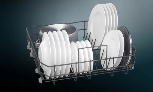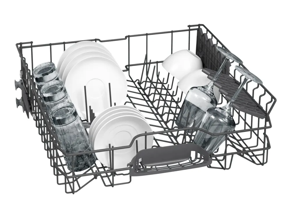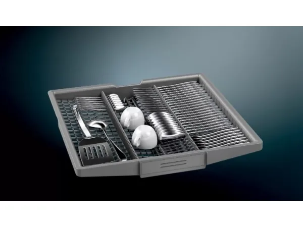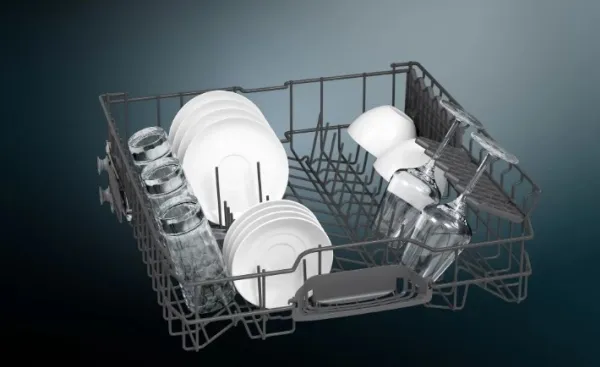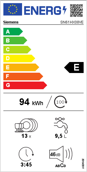 The Siemens iQ100 SN61HX08VE dishwasher combines efficiency with advanced features to deliver a thorough cleaning experience. With a water consumption of just 9.5 liters per cycle and energy consumption of 0.937 kWh, this appliance is designed for eco-conscious consumers. Its fully integrated built-in design optimizes space while providing a sleek appearance in any kitchen. The dishwasher offers five wash programs, including ECO, intensive, and rapid options like MyFavorite and varioSpeed Plus, catering to various cleaning needs.