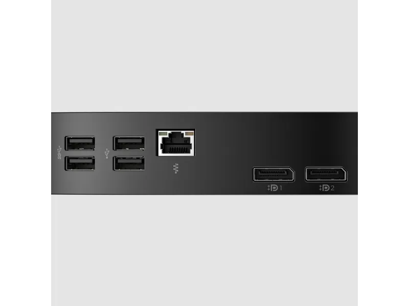 2 x USB 3.2 Gen 1 (2 fronts) 1 x USB-C 3.2 Gen 1 (1 foran) 2 x USB 2.0 (2 bak) Hodetelefon/mikrofon (1 foran) 2 x DisplayPort 1.2 1 x LAN (Gigabit Ethernet) - RJ-45 2 x USB 3.2 Gen 2 (2 bak)