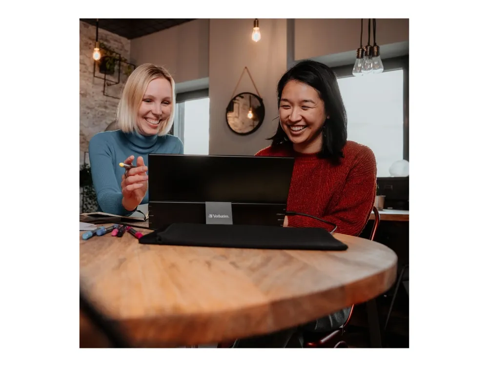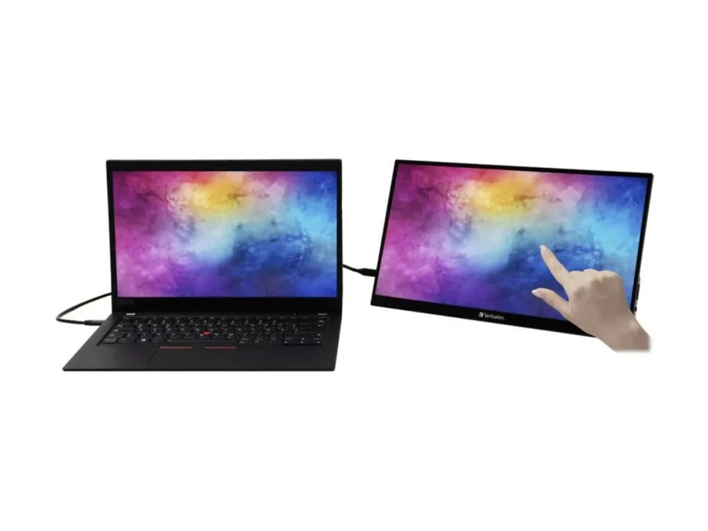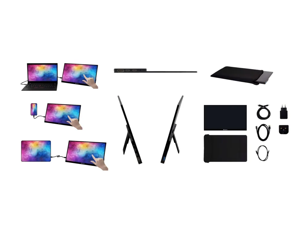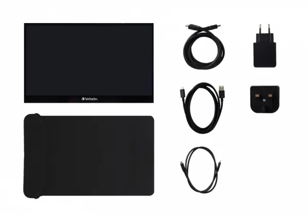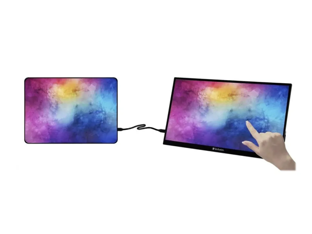 The Verbatim Portable Touchscreen Monitor is ready for work or play! This portable monitor gives you a second screen for your laptop, phone, tablet, or portable gaming system while on the go. The responsive and intuitive touch screen on this monitor has 10-point touch functionality, a feature allowing multiple users to perform independent functions simultaneously - perfect for your next work presentation or for personal use! If you are looking to get tasks done efficiently, the monitor's responsive screen also allows you to swipe, scroll, drag, and pinch images seamlessly. The built-in kickstand and tilt features only add to the convenience of this second monitor. Compact and versatile, this high-definition monitor is an ideal solution to help overcome on-screen limitations, anytime and anywhere.