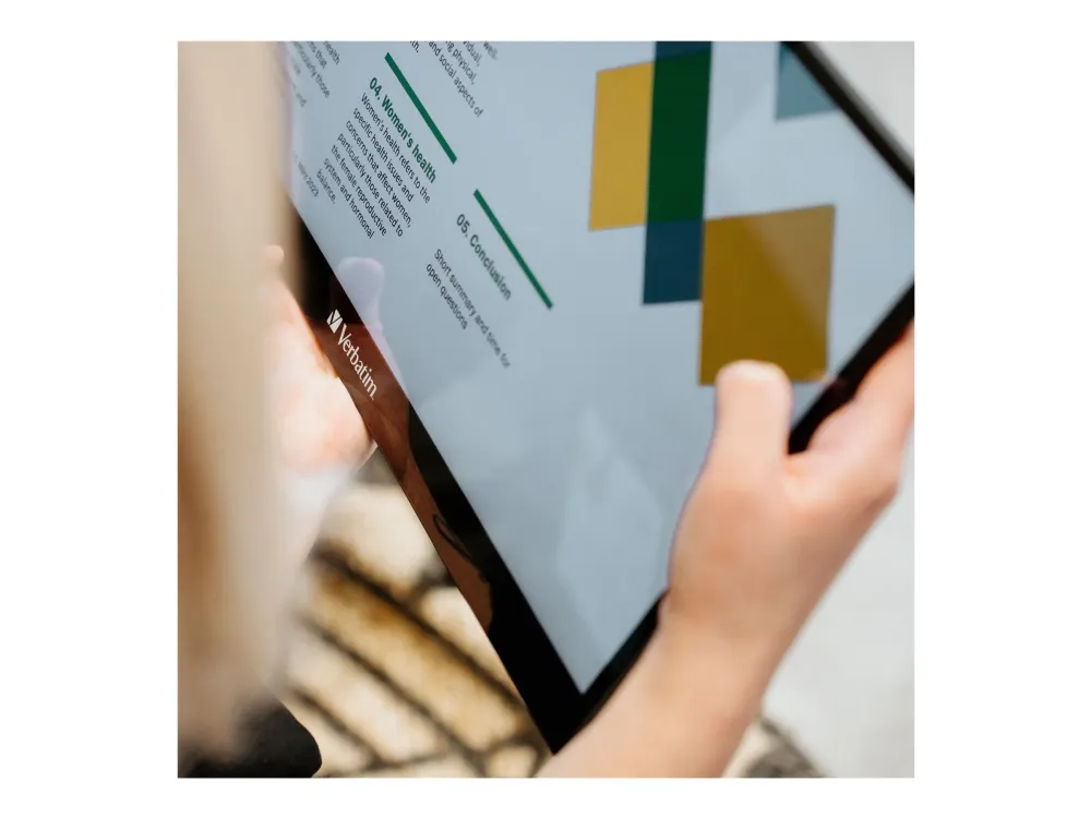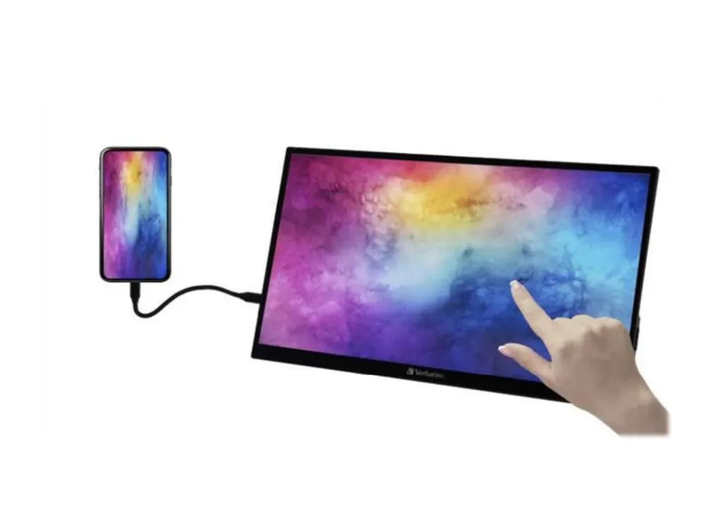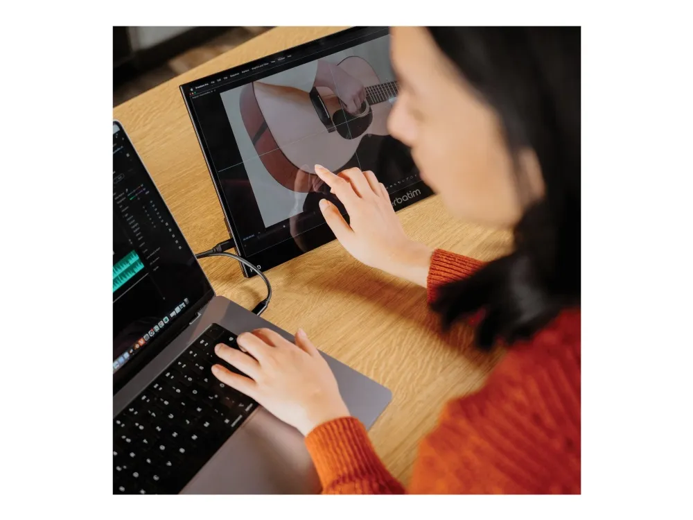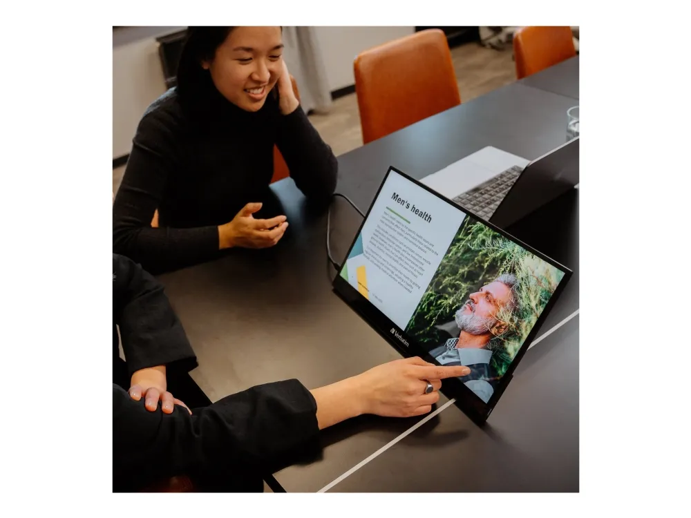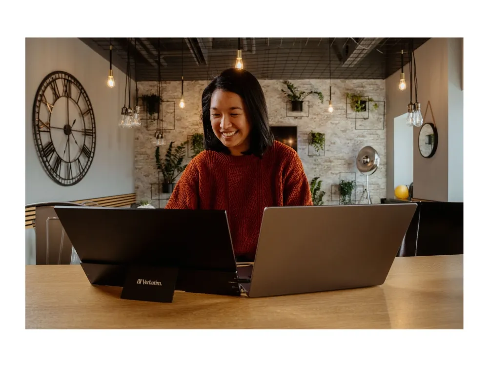The Verbatim Portable Touchscreen Monitor is ready for work or play! This portable monitor gives you a second screen for your laptop, phone, tablet, or portable gaming system while on the go. The responsive and intuitive touch screen on this monitor has 10-point touch functionality, a feature allowing multiple users to perform independent functions simultaneously - perfect for your next work presentation or for personal use! If you are looking to get tasks done efficiently, the monitor's responsive screen also allows you to swipe, scroll, drag, and pinch images seamlessly. The built-in kickstand and tilt features only add to the convenience of this second monitor. Compact and versatile, this high-definition monitor is an ideal solution to help overcome on-screen limitations, anytime and anywhere.