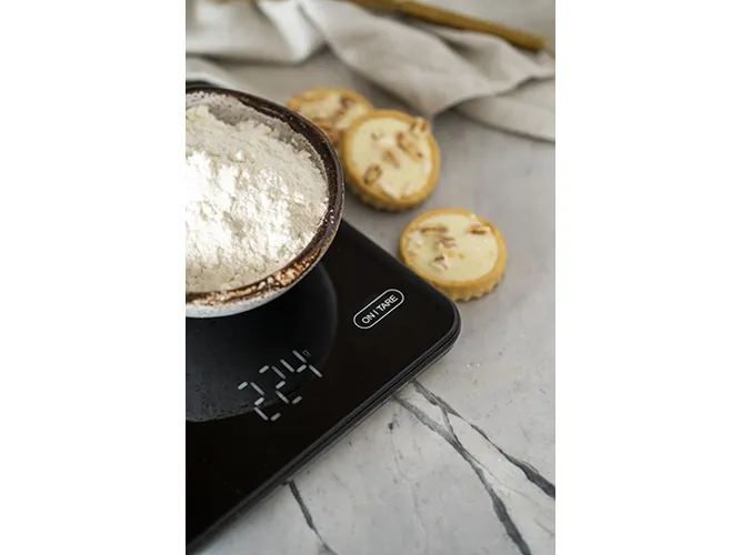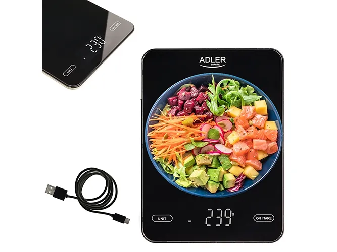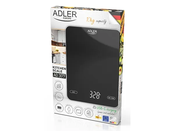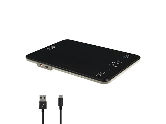 Capacity: 10kg Division: 1g/0.1lb:oz, 0.05oz, 1ml Auto off: 2min, Tare function White LED display Sensor touch buttons USB type C - rechargeable
