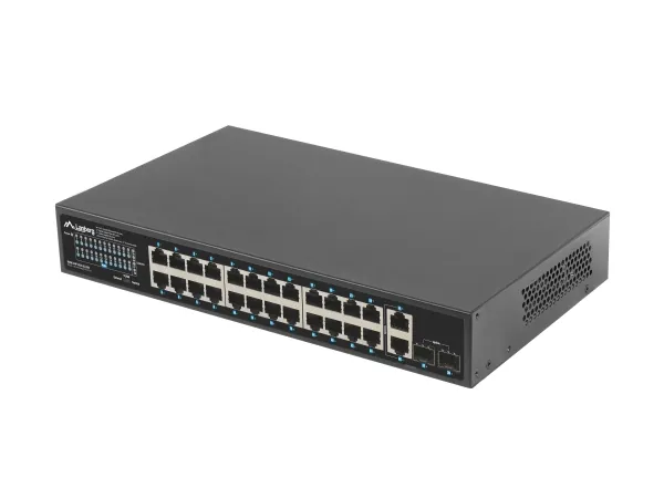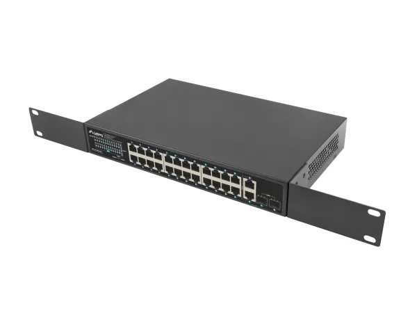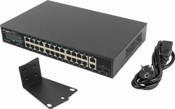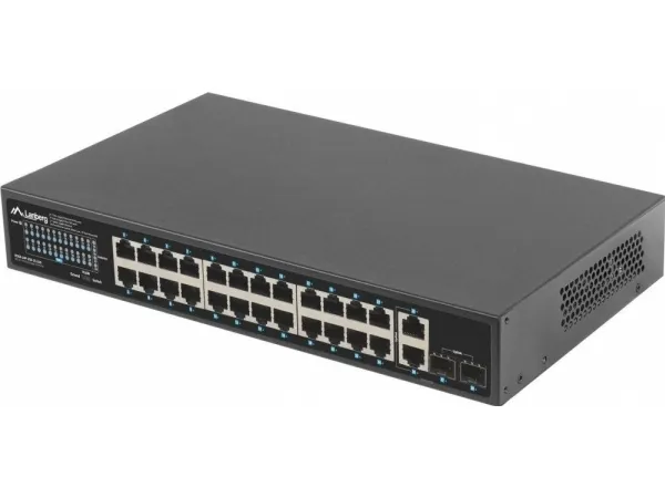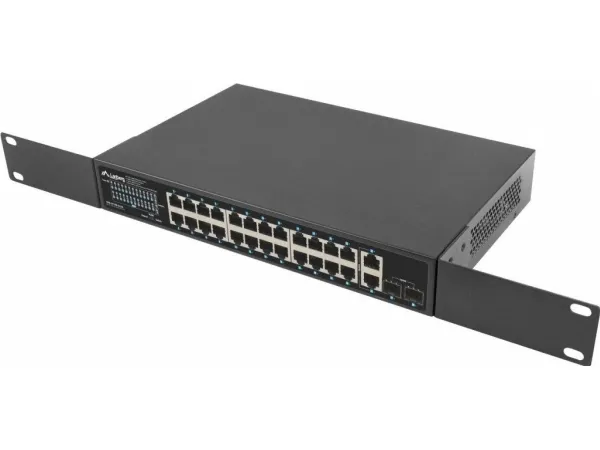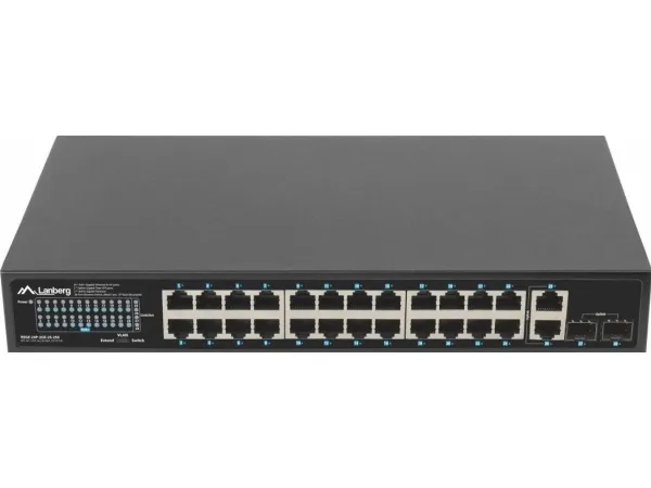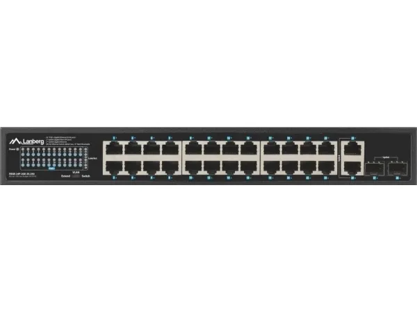The PoE+ switch is an essential active networking device in any Ethernet infrastructure using power transmission through the structural cabling. RSGE-24P-2GE-2S-250 is dedicated to all kinds of installations: home, business, low-voltage, surveillance, IP, VoIP, cable TV networks, and in a particular product can be used in alarm, fire, or access control system.Apart from the switch's primary function, i.e., supporting Ethernet frame transfer between ports, the device also provides a power supply for each appliance in PoE/PoE+ standard – 802.3af and at. This means that the switch can supply the devices with a total of up to 250 W. All of this is combined with data transmission at the same time.As a result, such a solution saves resources, space, and time to install a separate electrical and network infrastructure. This is especially important if the network is dispersed and its end-devices do not have direct access to the power source, in particular, when they are mounted outside.The switch is fitted with a total of 28 ports, including 24 PoE+ (Gigabit Ethernet), 2 Uplink (Gigabit Ethernet) and 2 Uplink (SFP Gigabit) ports. The well-thought-out design and attention to details and quality of components enable the user to achieve up to 250 W of real power for the end-devices, which translates into the simultaneous connection of:16 IEEE 802.3af devices (max. 15W per port) or,8 IEEE 802.3at devices (max. 30W per port),The 4 remaining (Uplink) ports (2xGigabit Ethernet and 2xSFP Gigabit) operate independently and can operate simultaneously. Dedicated to transferring data traffic between 24 PoE+ ports and external devices. In the case of surveillance/control systems, this is particularly useful as it allows the user to simultaneously play the recording(s) from the IP cameras on the NVR and share it further, e.g., in the local network or on the Internet.It is not always clear how switches will behave when the available PoE budget is exceeded. There are several possibilities: the one that exceeds the budget or a random port or the recently connected one will be disconnected. In the last case, what will be their order after a power outage and restoration when all cables are simultaneously connected to the switch?Lanberg has introduced an innovative solution in the RS series switches that eliminates all doubts about the mechanics of RJ-45 ports.When the PoE budget is exceeded (e.g., due to a device connected to port 1), the switch will start disconnecting the PoE ports from the highest numbered one until the sum of loads does not exceed the available budget while keeping the remaining ports intact. Those that are disconnected will, in effect, alternately turn off and on.This functionality is primarily dedicated to demanding applications that emphasize safety and continuity of operation, requiring some devices to work continuously regardless of the situation. In such cases, Lanberg switches will help the user to safeguard sensitive devices by connecting them to the port with the lowest number.By default, the standard switches ensure that the devices can operate at distances of up to 100 m on a single Ethernet cable. However, sometimes, it turns out that a unique solution beyond the standard is required when developing cabling and network structure due to the extensive core network and complex environment. In the case of surveillance systems, this is quite a common problem, resulting from the too-long distance between the distribution device and the end-device.Lanberg switches have a feature that enables data transmission (max. 10 Mbps) and PoE+ power supply up to 250 m on a single cable section. Just toggle the switch position to „PoE+ Extend 250 m” on the housing to ensure the long-distance operation for ports 1 ~ 24.The solution has been introduced for surveillance, IP, and access control systems, especially if the power equipment is located outside without the possibility of installing additional network distribution points.The switch itself, as well as the devices connected to it, are repeatedly exposed to various dangers, including electrostatic discharges that can flow through both the power and network cables.With the safety of both the devices and their users in mind, Lanberg has equipped the switch with an integrated discharge protection system that guarantees 4 kV protection for all ports, effectively reducing their damage due to a surge in voltage.Under standard conditions, the network operation will continue without interruptions, just like the switch. At the same time, the user gains the safety of the device and infrastructure.The series of RS switches is characterized not only by the quality of manufacturing, simplicity of use, the functionality of the device but also by complementarity in installation and supplied accessories.Lanberg added a set of accessories for flexible installation of the switches. The RSGE-24P-2GE-2S-250 has been provided with separate mounting ears for 19" Rack cabinets, as well as a healthy supply of screws (except for M6). This enables a wider range of applications and greater freedom of installation of the RS series switches.Lanberg RSGE-24P-2GE-2S-250. Switch type: Unmanaged. Basic switching RJ-45 Ethernet ports quantity: 24. Rack mounting