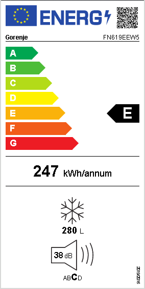 Gorenje Essential FN619EEW5 - Fryser - stående - bredde: 59.5 cm - dybde: 66.3 cm - høyde: 185 cm - 280 liter - Klasse E - hvit
