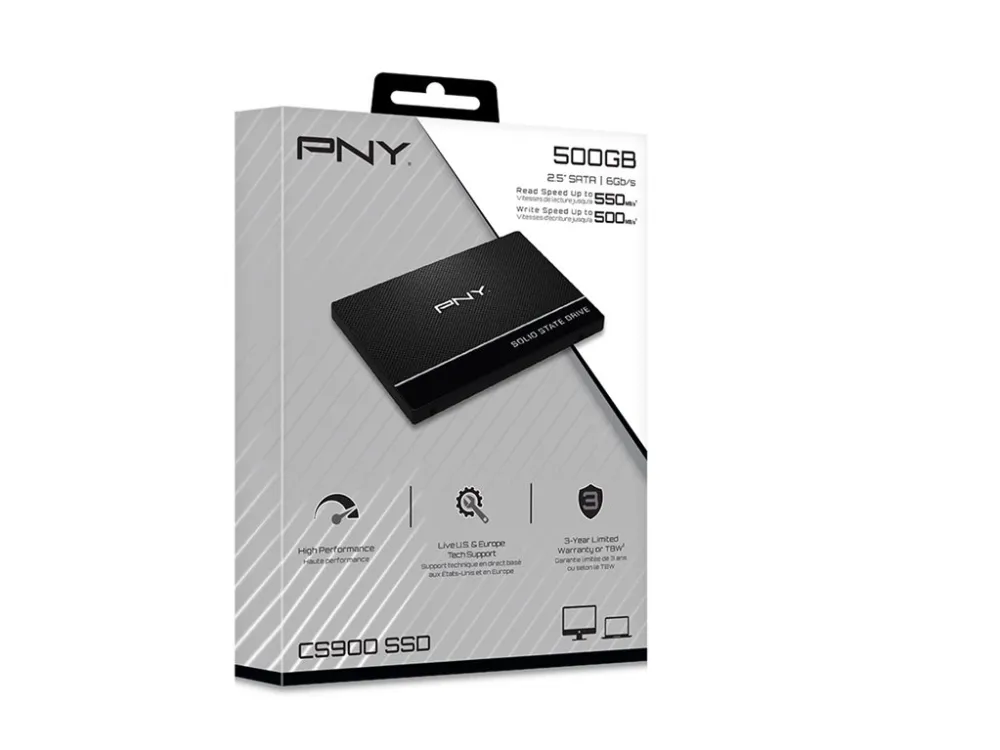 The PNY CS900 2.5-inch SATA-III solid-state drive is the value performance line of PNY SSDs. It is an excellent choice for an entry-level upgrade from a hard disk drive (HDD). The PNY CS900 was designed to be an easy and cost-effective HDD replacement for your existing PC system, without having to sacrifice performance. Upgrading to the CS900 SSD will help you experience an overall performance boost. Boot up, power down, and load applications in seconds. The PNY CS900 is an excellent choice for energy efficiency and consumes significantly less power than hard drives. Users can benefit from lower power usage, longer battery life, and a cooler, quieter system. Spend more time enjoying your system and less time worrying about battery consumption.
