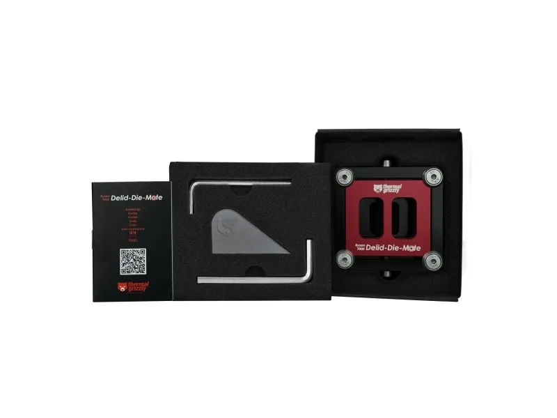 Thermal Grizzly Delid-Die-Mate er utviklet for å fjerne CPU-integrerte varmespredere, noe som gjør den til et viktig verktøy for entusiaster og profesjonelle. Produktet leveres med to vinkelnøkler og et CPU-rengjøringsverktøy, som er nødvendig for å håndtere CPU-avlusningsoppgaver. Den er laget av anodisert aluminium og er holdbar og pålitelig, slik at den tåler kravene ved gjentatt bruk.