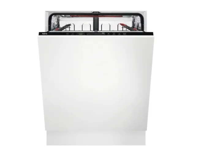 AEG FSE63657P. Appliance placement: Fully built-in, Product size: Full size (60 cm), Control panel colour: Black. Number of place settings: 13 place settings, Noise emission class: B, Noise level: 39 dB. Energy efficiency class: D, Water consumption per cycle: 10.5 L, Energy consumption per 100 cycles: 84 kWh. Width: 596 mm, Depth: 550 mm, Height: 818 mm. Package weight: 40.1 kg