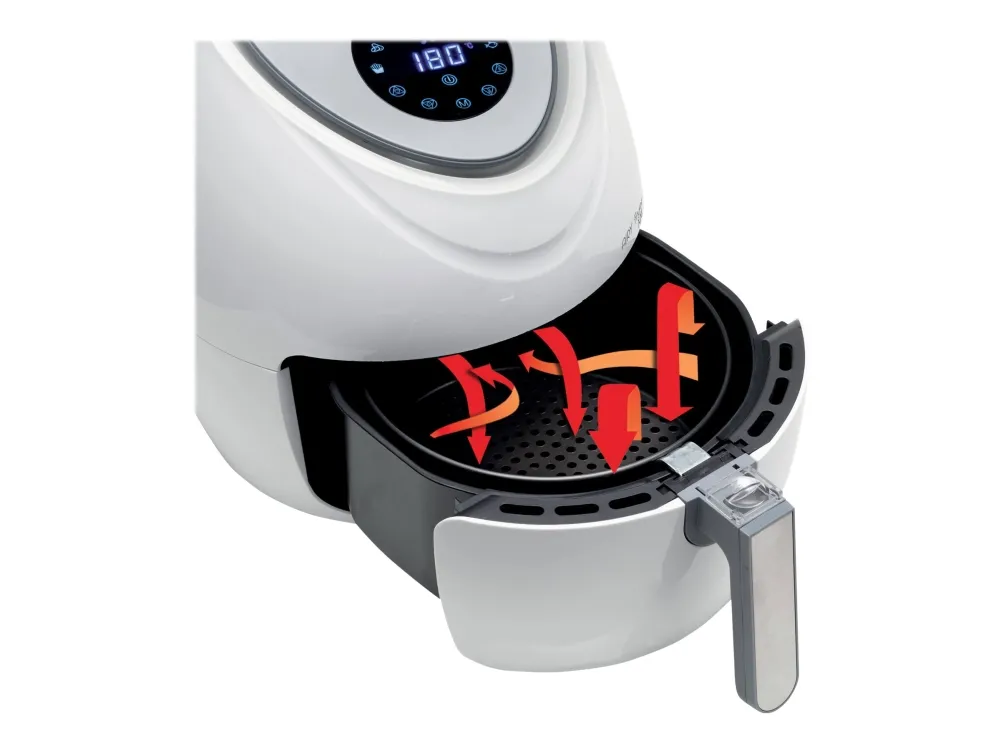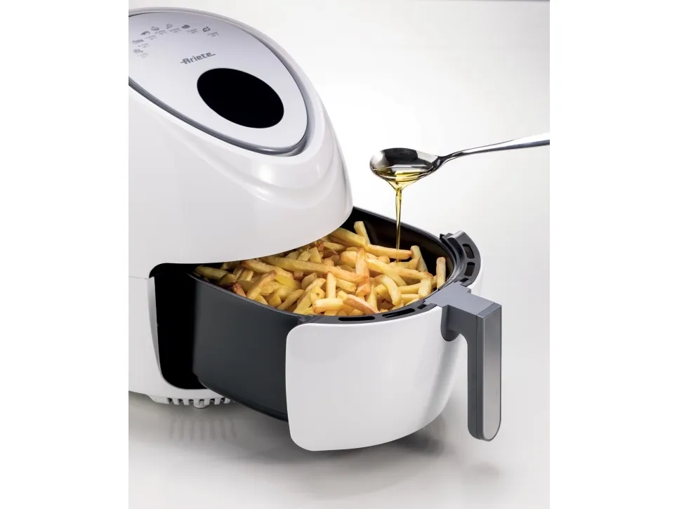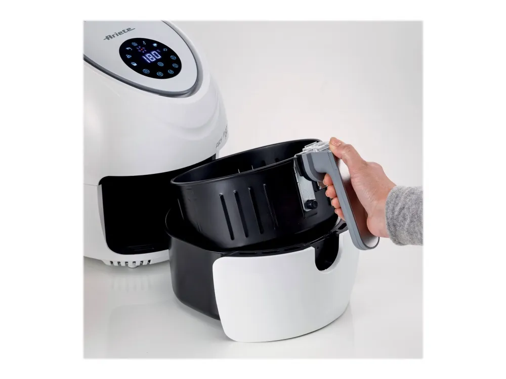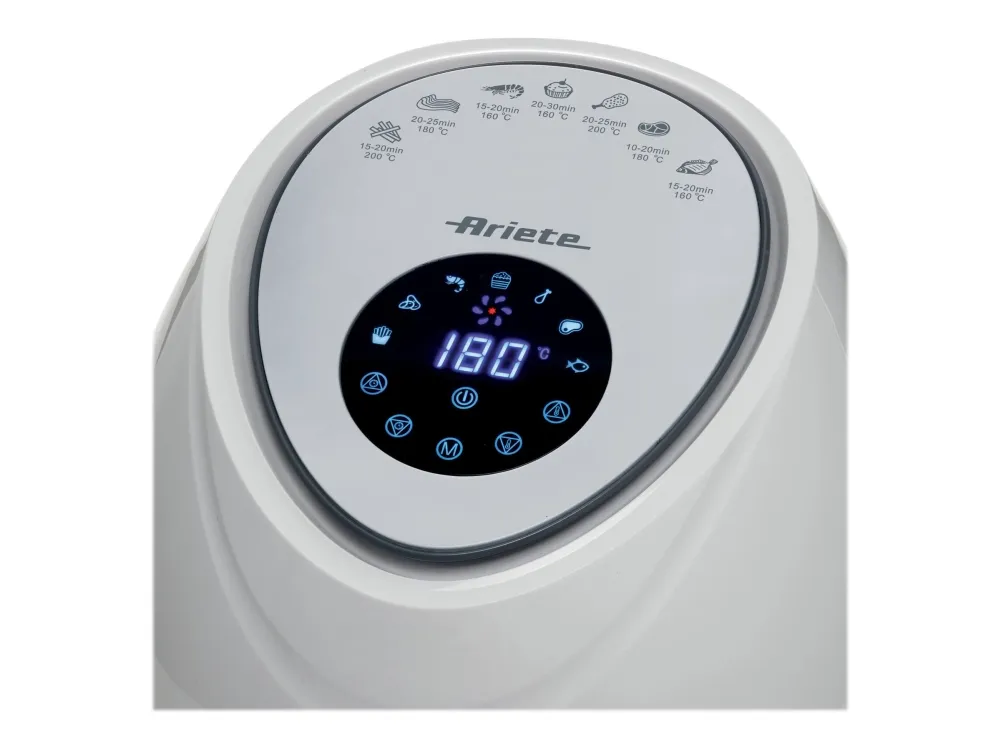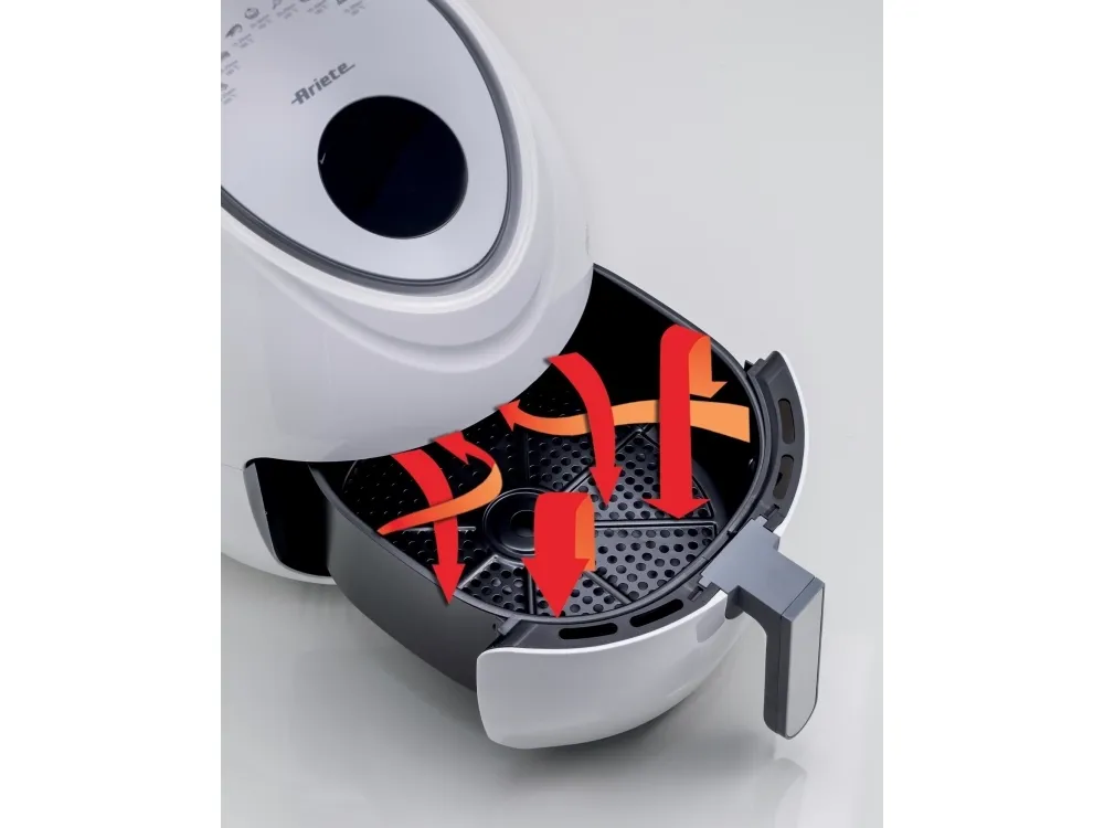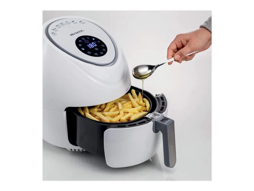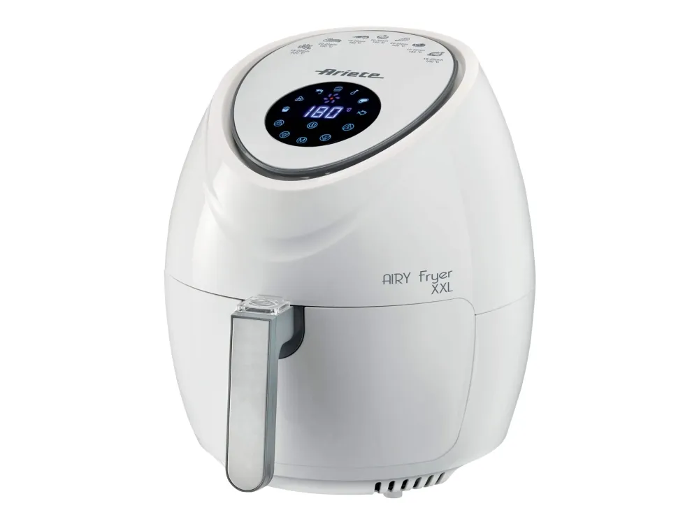 Discover the Ariete 4618 Airy Fryer XXL, a kitchen appliance that transforms the way you cook. With a generous 5.5-liter capacity, it's ideal for preparing large meals for family and friends. This hot air fryer is designed to meet your diverse culinary needs, featuring seven distinct cooking functions for everything from crispy french fries to succulent red meat, and even delicate sweets. The touch-sensitive controls and an LCD display make operation straightforward, while the adjustable temperature range from 80°C to 200°C ensures each dish is cooked precisely. The inclusion of a recipe book inspires you to explore new flavors and dishes. Additionally, the removable basket and non-stick surface make the cleanup process simpler, allowing you more time to enjoy your meals. Embrace healthier cooking without sacrificing flavor with the Ariete 4618 Airy Fryer XXL.