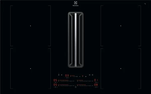 Induksjonskomfyrtopp - 4 plater med fallvindeksos (uttrekk og resirkulering)