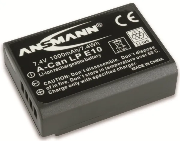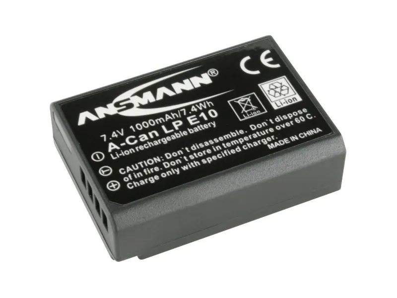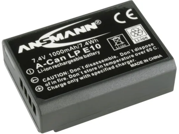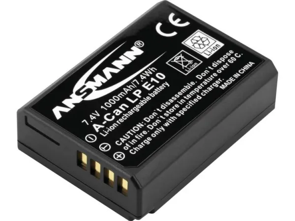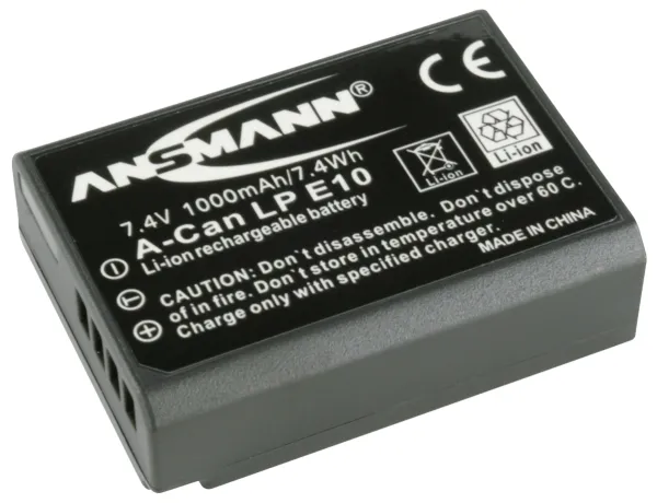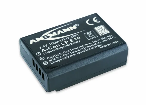 The Ansmann A-Can LP-E10 1000mAh 7.4V is a replacement rechargeable lithium ion battery, equivalent to the Canon LP-E10 Battery for Canon EOS 1100D Digital SLR.