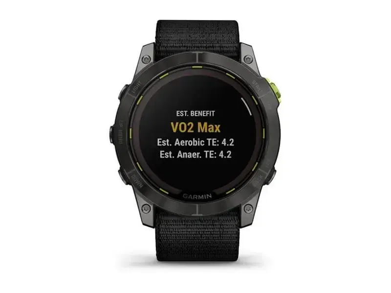 The Garmin Enduro 2 is a sport watch designed for adventurers. With its rugged titanium bezel and case back, fiber-reinforced polymer body, and waterproof design, it's built to endure challenging environments. The Enduro 2 thrives in them, thanks to solar charging technology that extends battery life and a sunlight-readable display. Navigation is precise with a GPS/GLONASS/Galileo receiver, TopoActive maps, and Trendline Popularity Routing, ensuring you're never lost, whether you're hiking, biking, or swimming. Health and fitness tracking is comprehensive, featuring a Pulse Ox sensor, heart rate variability monitoring, and a Body Battery feature to monitor energy levels. Stay connected with ANT+, Bluetooth, and Wi-Fi capabilities, allowing for SMS and social app notifications, incoming call alerts, and Garmin Pay for contactless payments. Whether exploring new trails or tracking training progress, the Garmin Enduro 2 is a reliable companion for every adventure.