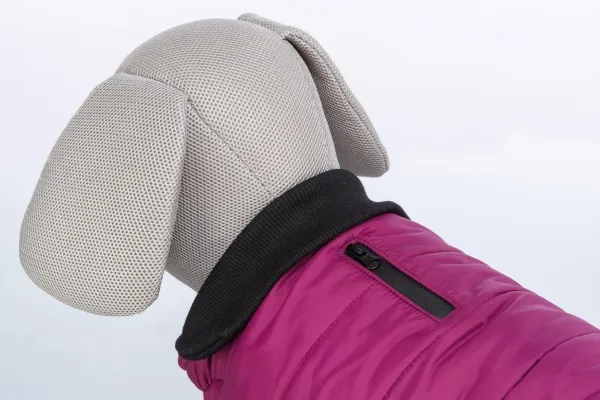 For at sikre en perfekt pasform har frakken en justerbar elastisk hagesmæk, der kan tilpasses efter din hunds halsstørrelse. Dette bidrager til at forhindre, at vand og kulde trænger ind under frakken.