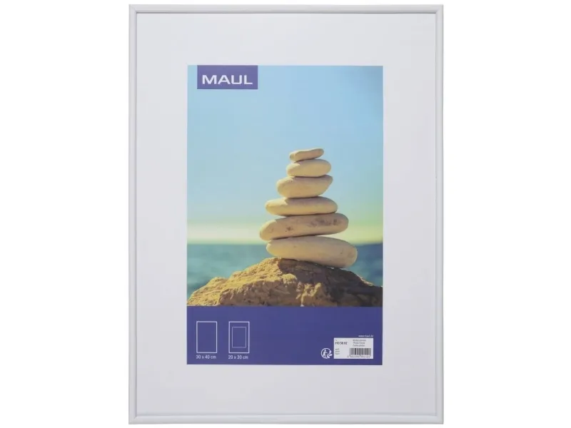 Billedramme MAULart plast, 30 x 40 cm, hvid Virker elegant: Ramme højglansStabil: Ramme 14 mm høj, hjørner forbundet i gering og forstærket med metalklemmerKlar form, afdæmpet designKomfortabel håndtering: Hurtiglås med drejefjedre af metal, fast nittet, går ikke tabtGlasklar og sikker: Førsteklasses plastglas i polycarbonat, 0,6 mm tyk DickStabil: Bagvæg og opstiller af MDF100 % kan genbruges. Elegant, stabil plastksvekselramme i mange størrelser. Derhjemme eller på kontoret, til udstillinger, i modtagelsesområder eller gange, til dokumenter, i restauranten, i udstillingsvinduet. Til billeder, menukort eller reklamebudskaber i udstillingsvinduer, på tecerne, på museer, til fotografer, kunstnere, Gallerier, som repræsenterer.Tip: Skab en cool skærm med forskellige formater.