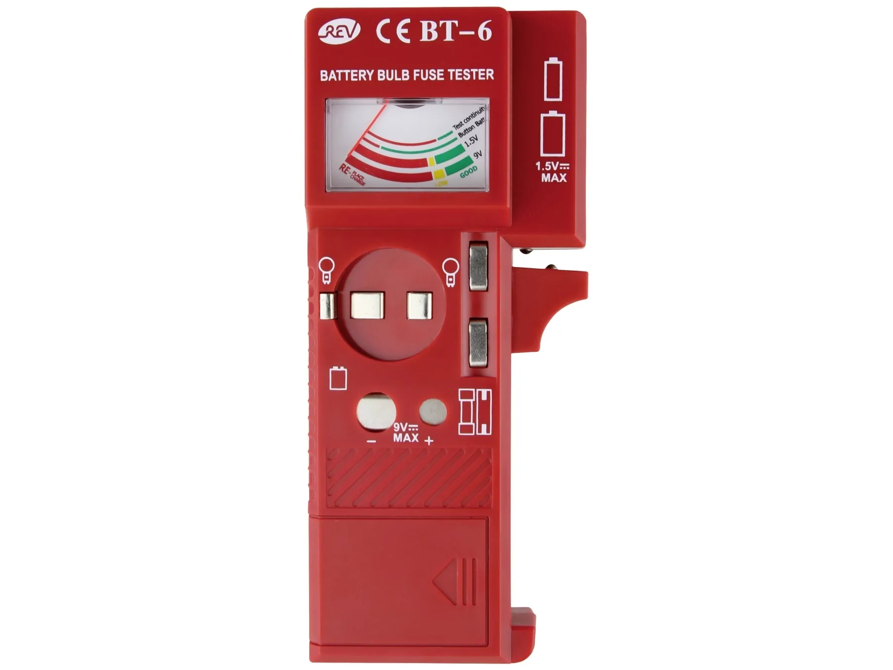 PRAKTISK - elektrisk måleapparat til test og måling af batterier, almindelige glødelamper og almindelige husholdningsfinsikringer (bilsikringer)FUNKTIONELT - anvendelige batterier: 1,5 V (AAA, AA, C, D) og 9 V-batterier (6LR61, 006P)ROBUST - kompakt og robust hus i brudsikkert plastKOMPLET - med spejlskala batteri 6LR61 9 V-batteriSIKKERT - kvalitetsprodukt, der er testet af producenten