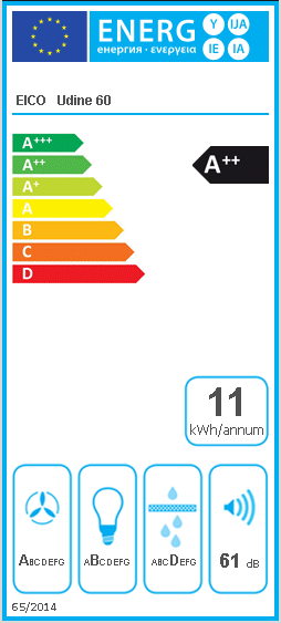 The EICO Udine 60 hood combines style with functionality, making it an essential addition to any modern kitchen. With its chimney angled design, it not only serves as a focal point but also efficiently removes smoke and odors with its powerful air extraction system, capable of reaching up to 567 m3/h in intensive mode. The inclusion of LED lighting ensures your cooktop is well-lit, while consuming less energy, contributing to the hood's energy efficiency rating. Despite its powerful performance, the Udine 60 operates quietly, maintaining a low noise level to keep your kitchen environment peaceful. Additionally, its touch-sensitive controls offer convenience and ease of use, allowing quick adjustments between four speed settings. Whether you're frying, boiling, or sautéing, the Udine 60 hood provides the performance and features needed to maintain a clean and pleasant cooking atmosphere.