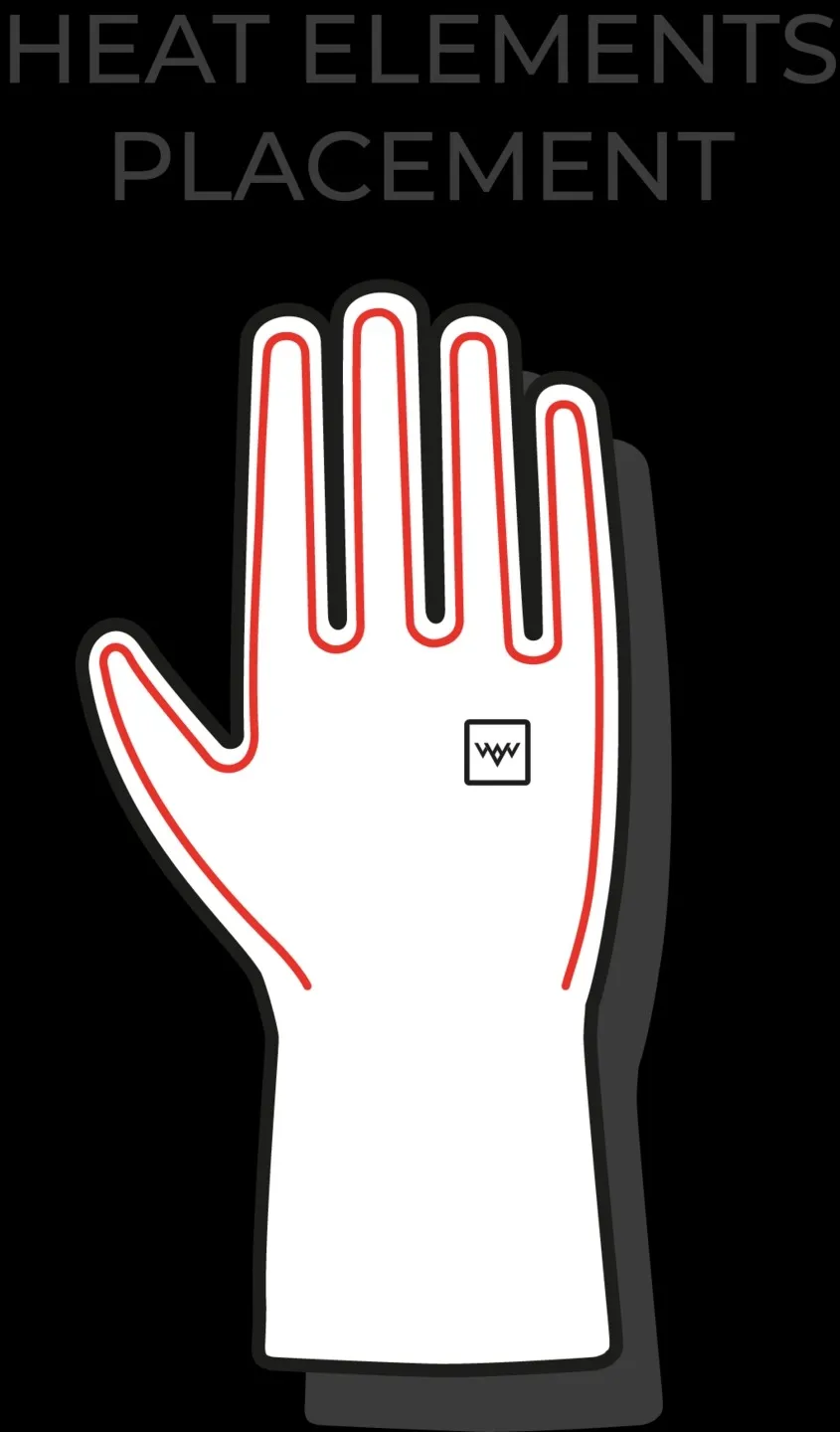 • Varmeelement: Jevnt fordelt på håndryggen og ned til hver fingertupp